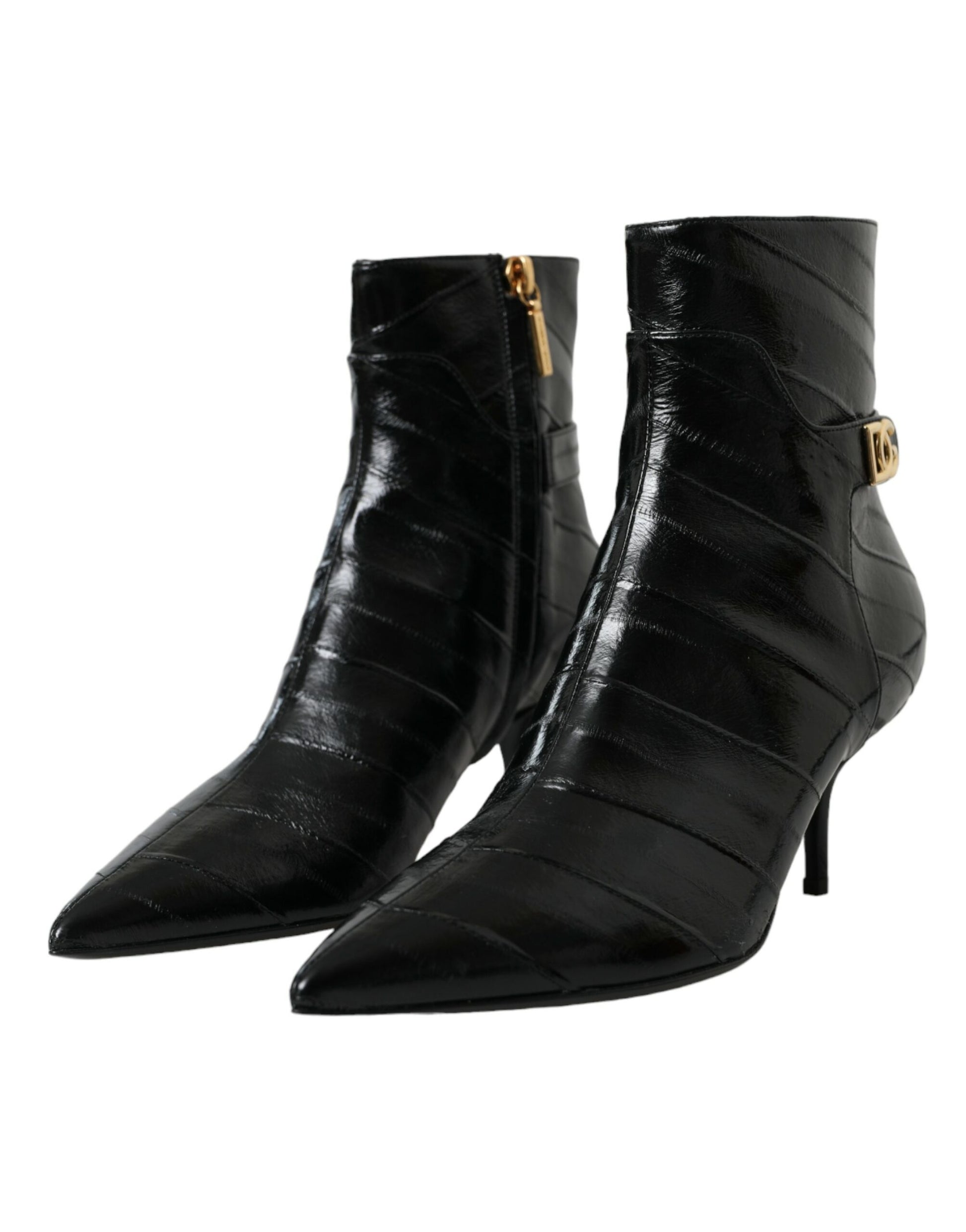 Dolce & Gabbana Black Eel Leather Logo Short Boots Shoes
