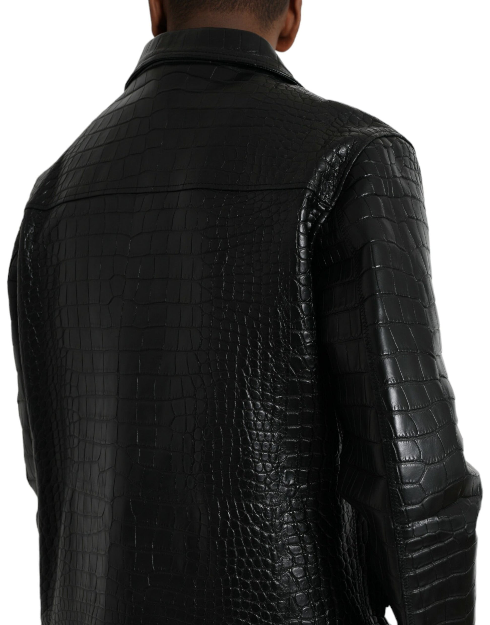 Dolce & Gabbana Black Exotic Leather Full Zip Jacket