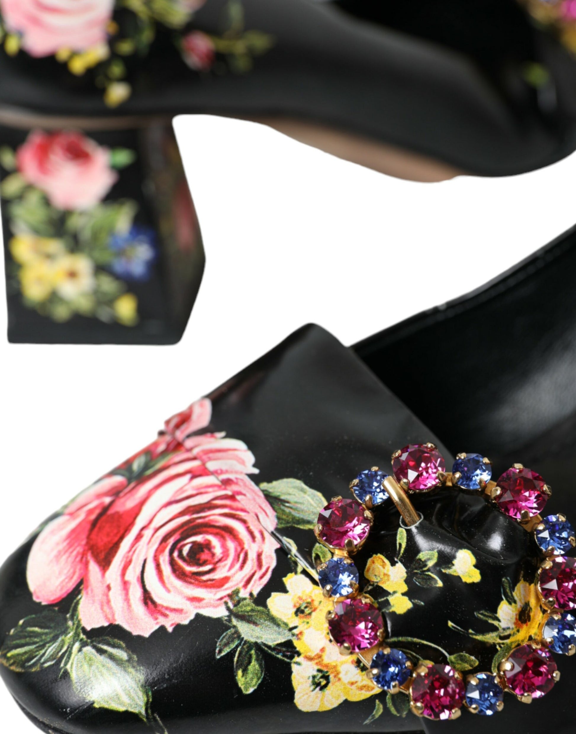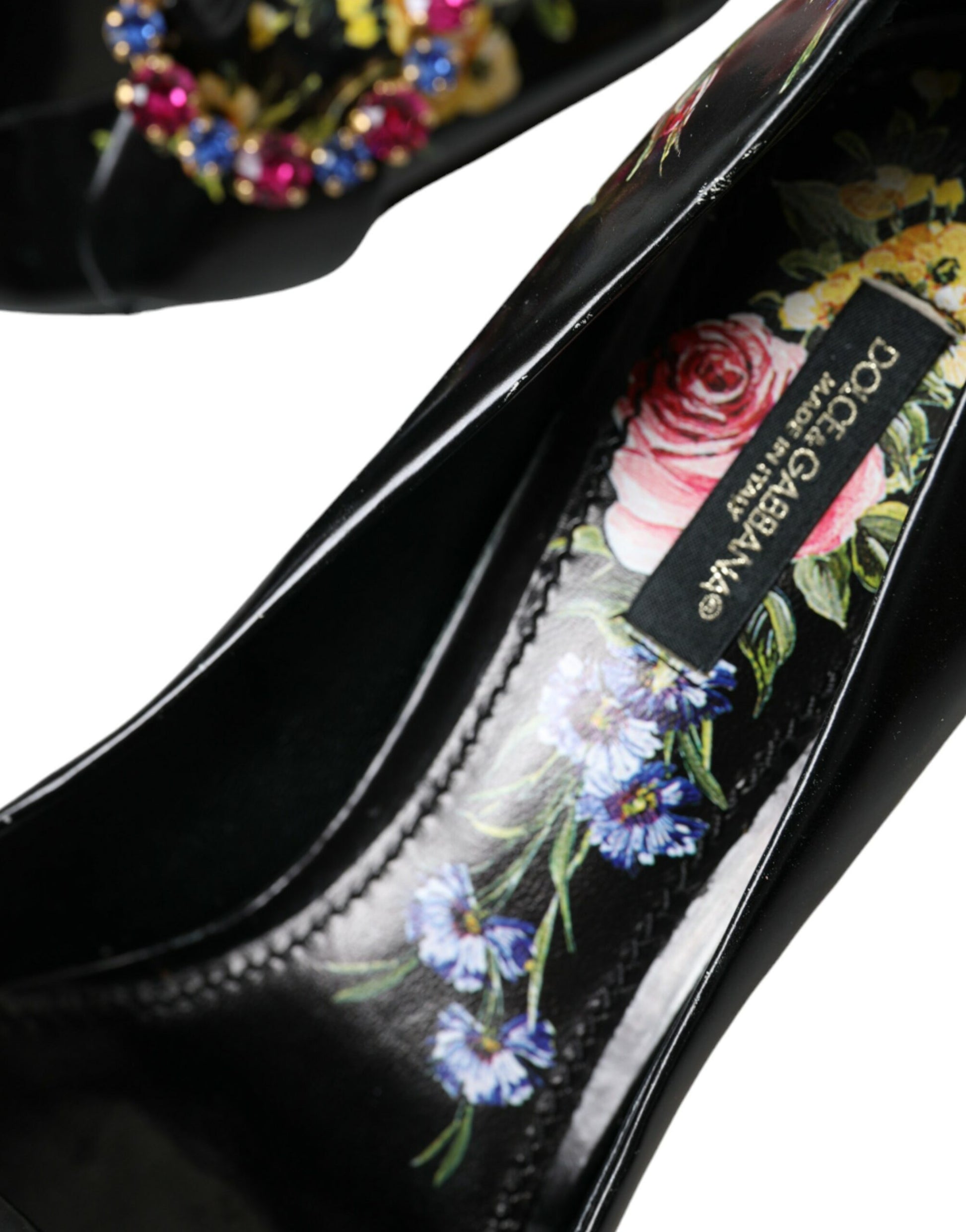 Dolce & Gabbana Black Floral Crystals Leather Pumps Shoes