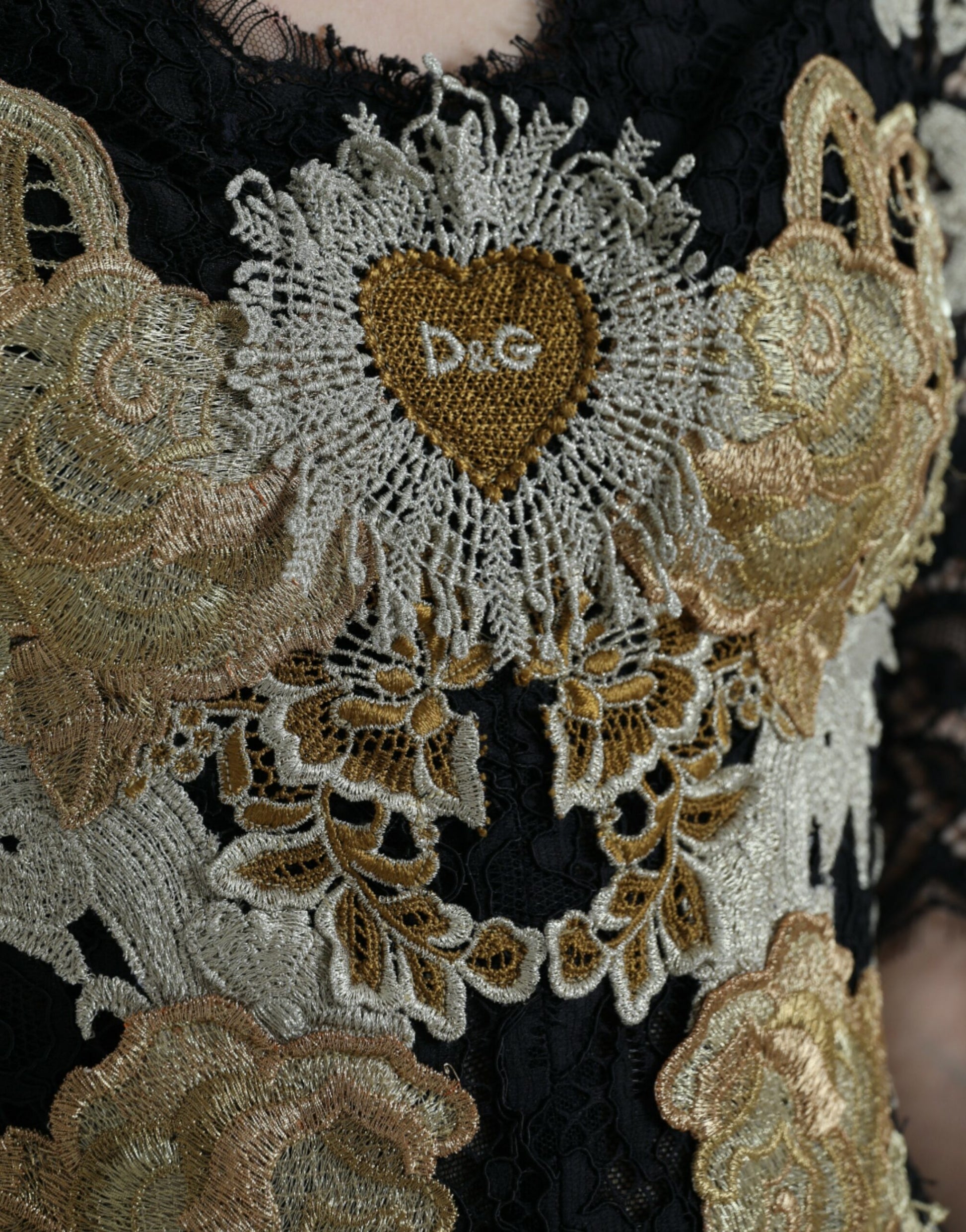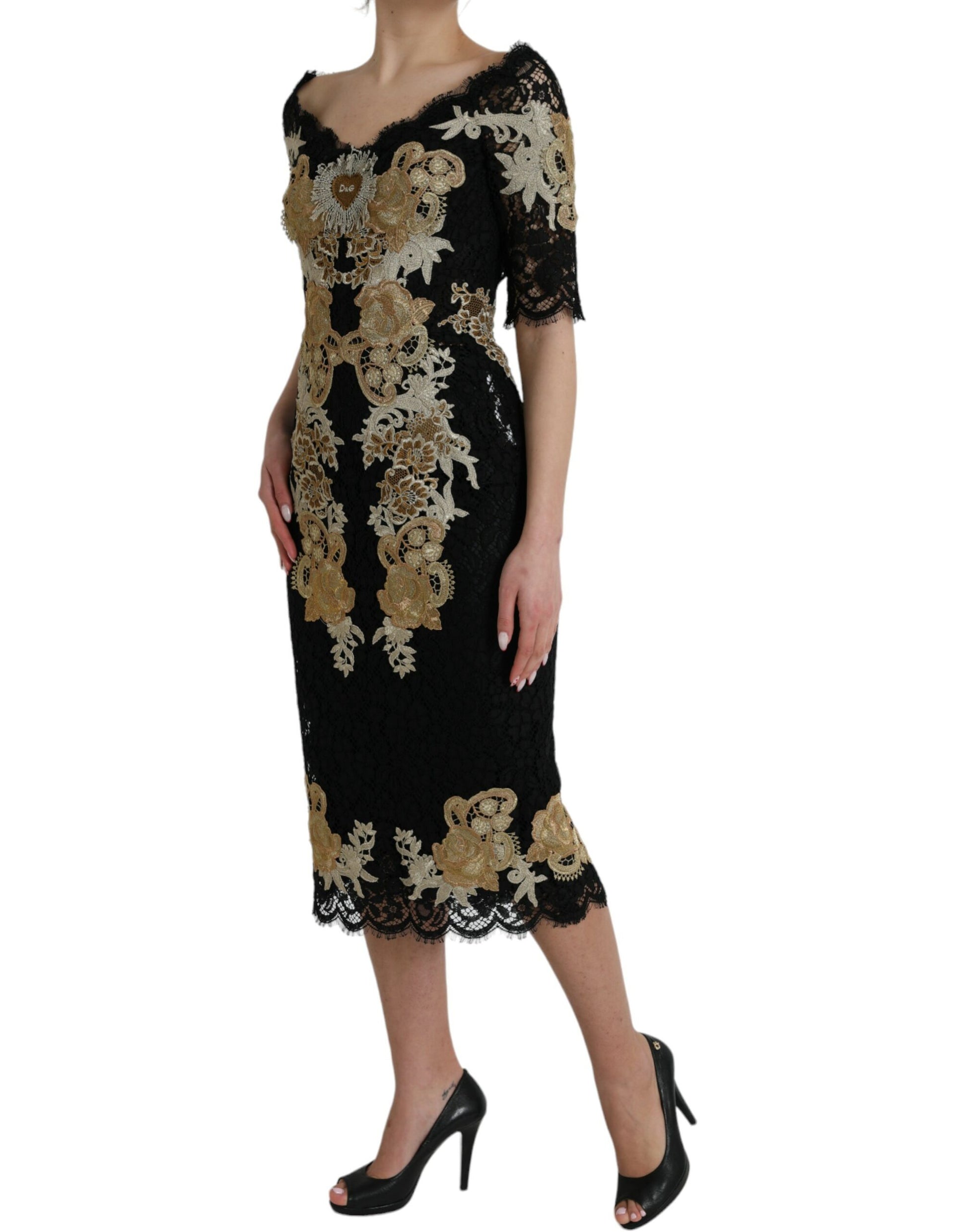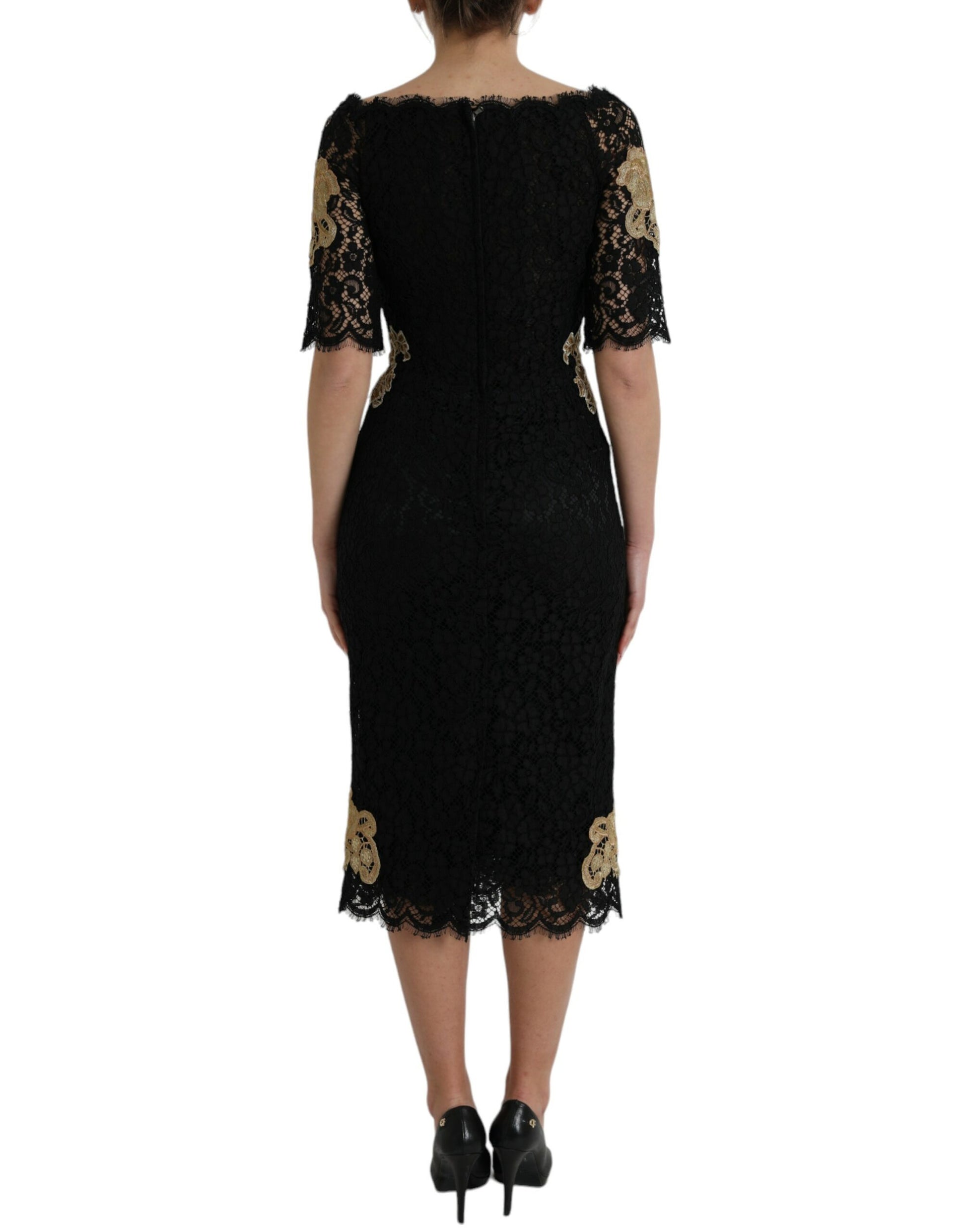 Dolce & Gabbana Black Floral Lace Cotton Sheath Midi Dress