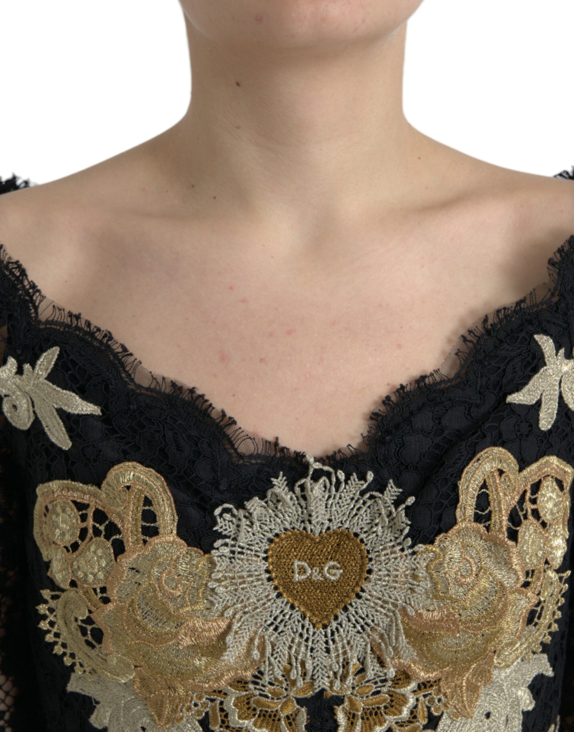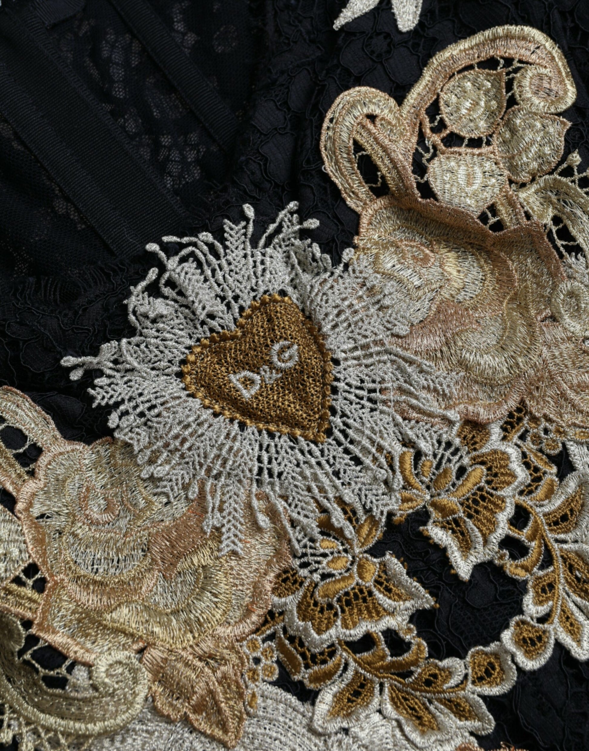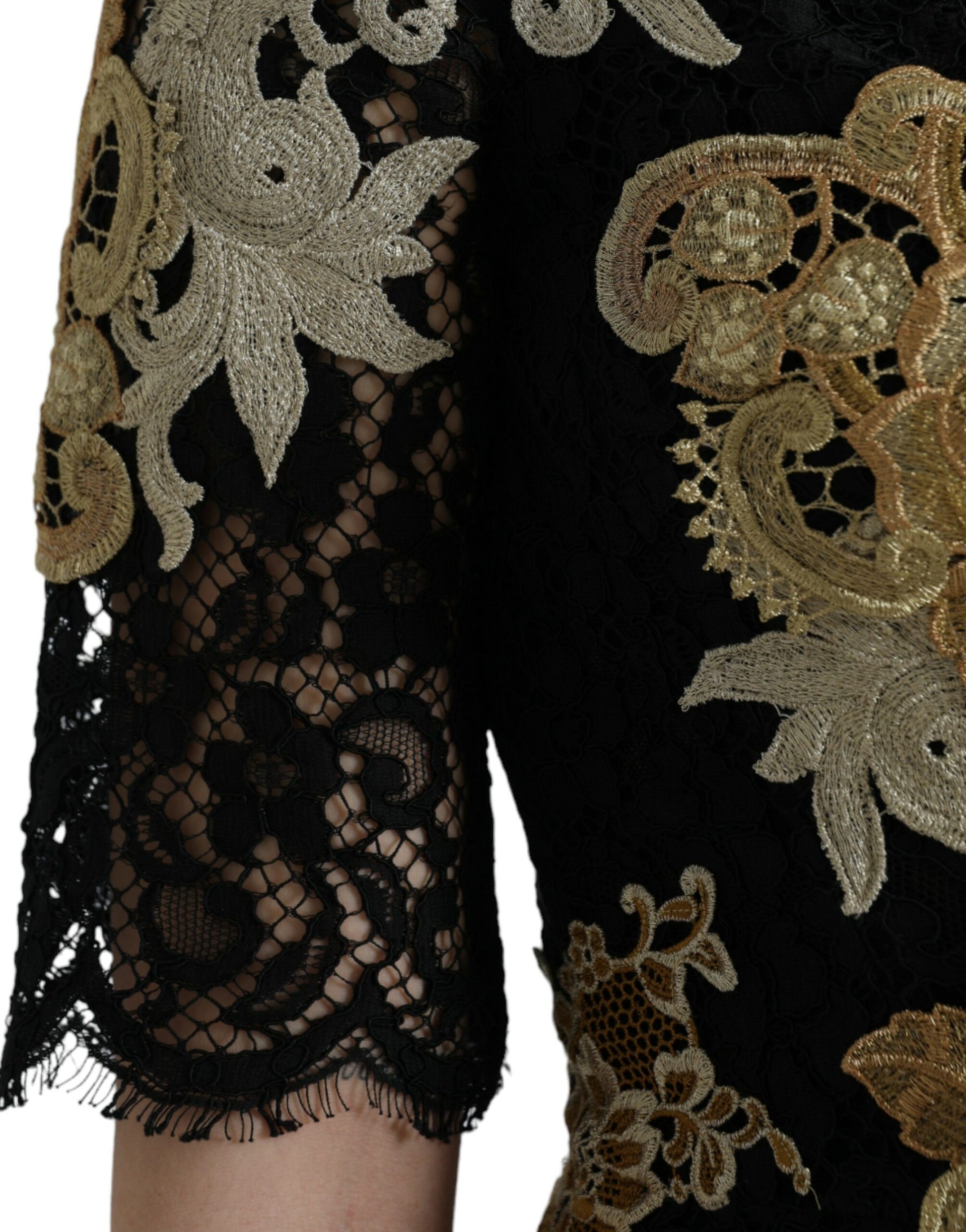Dolce & Gabbana Black Floral Lace Cotton Sheath Midi Dress