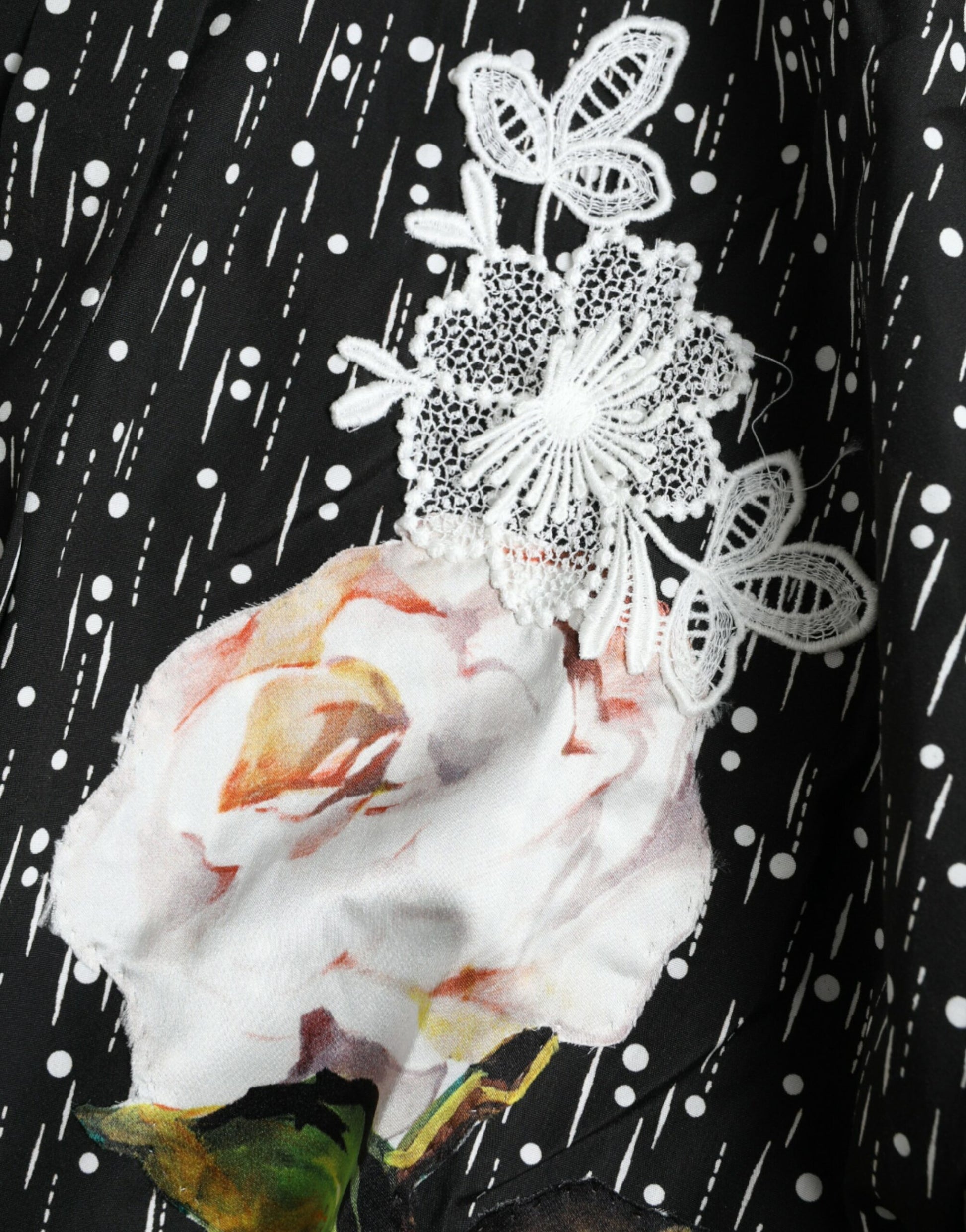 Dolce & Gabbana Black Floral Men Formal Dress GOLD Shirt