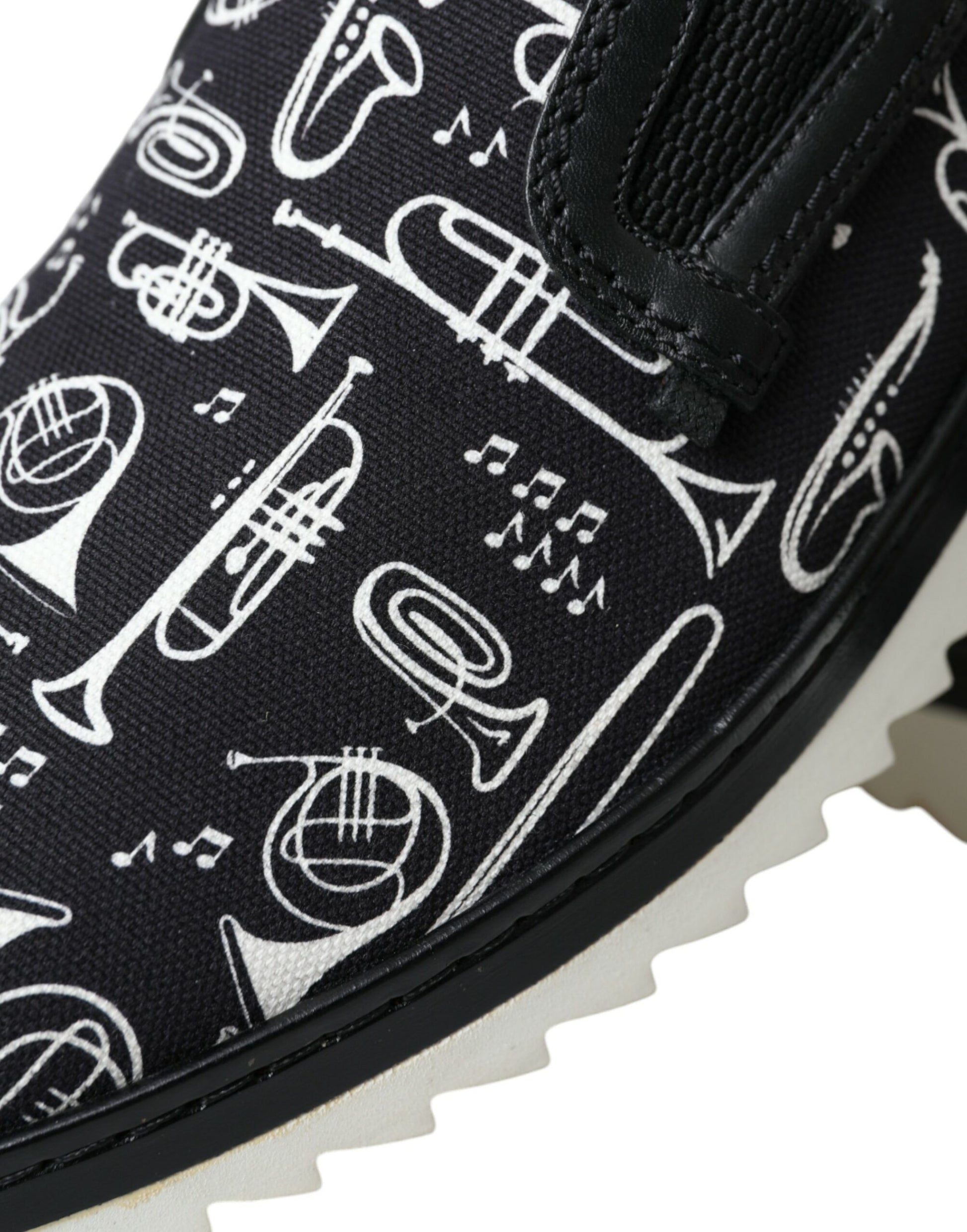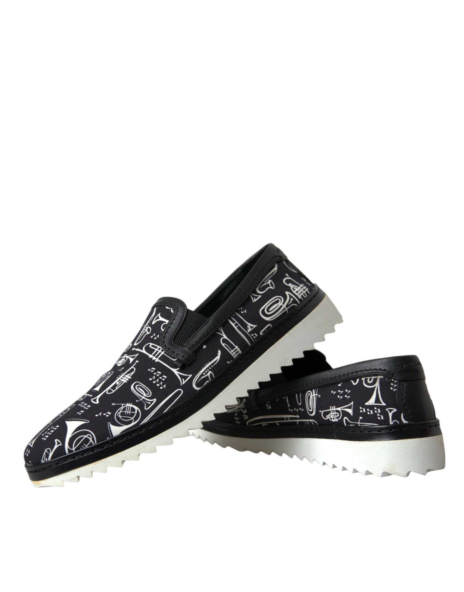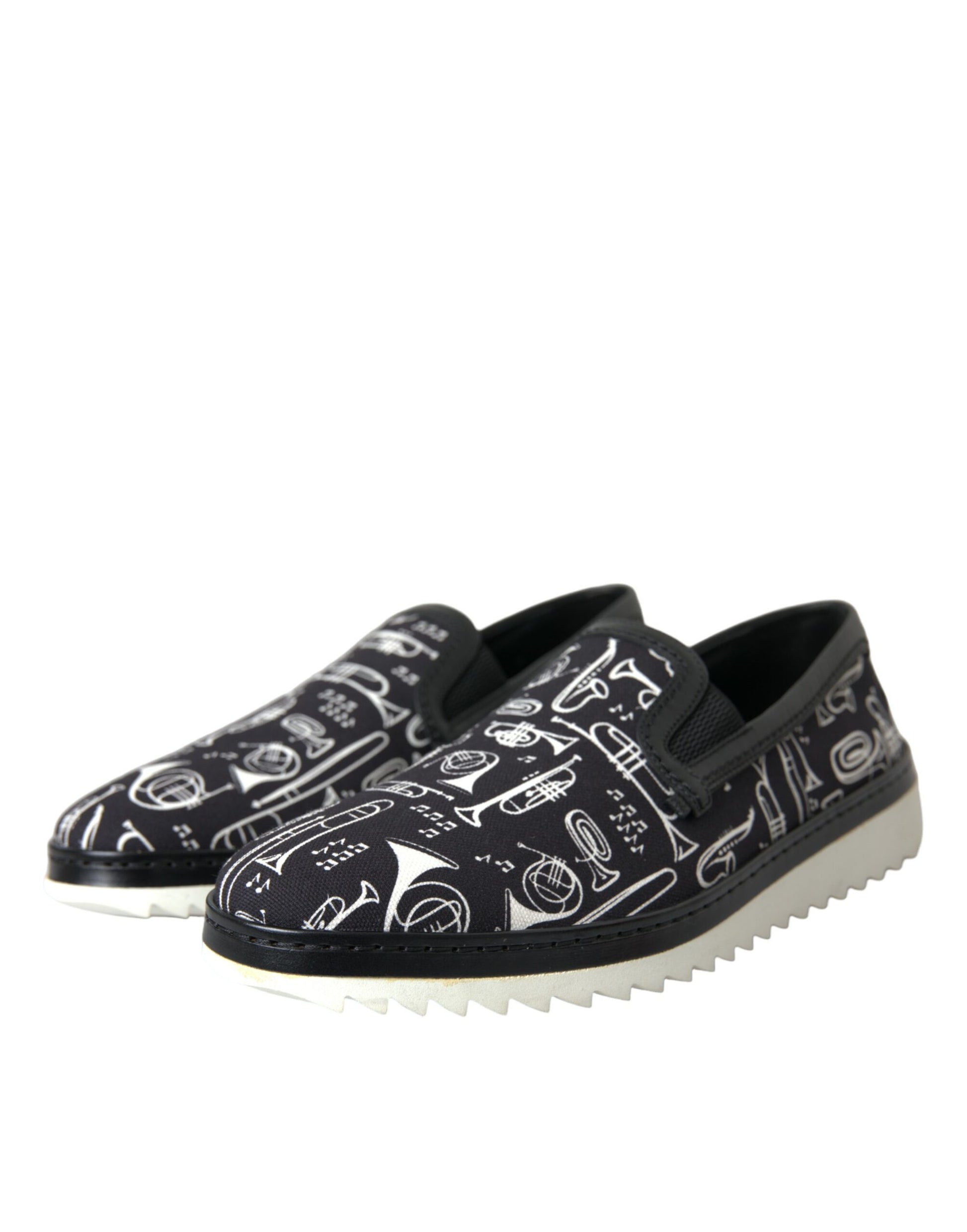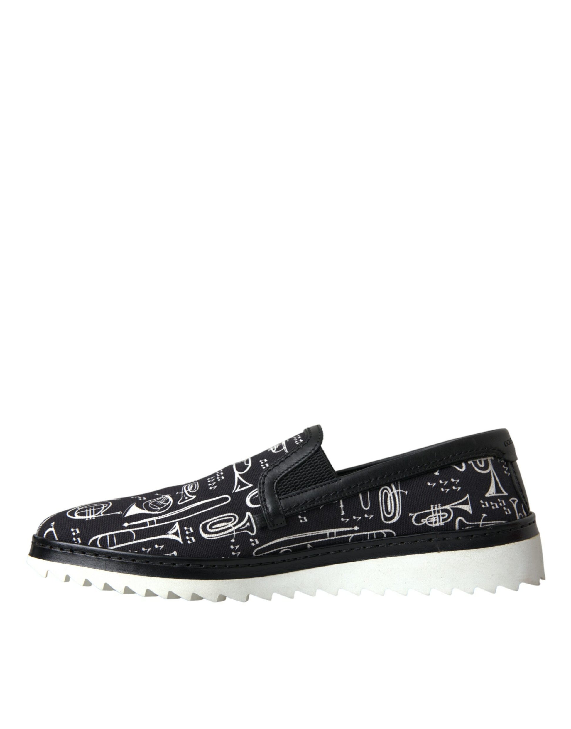Dolce & Gabbana Black Instrument Print Slip On Loafers Shoes