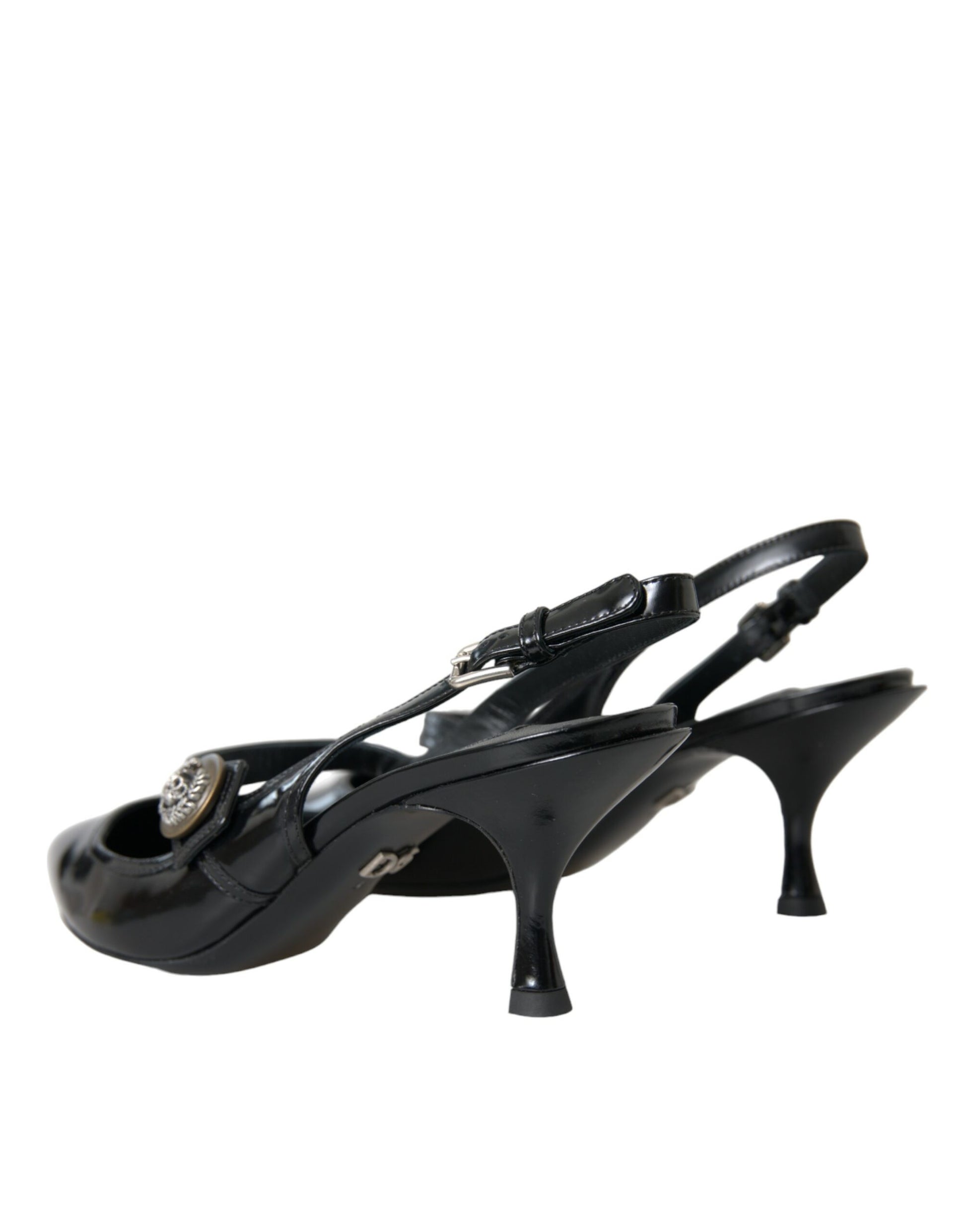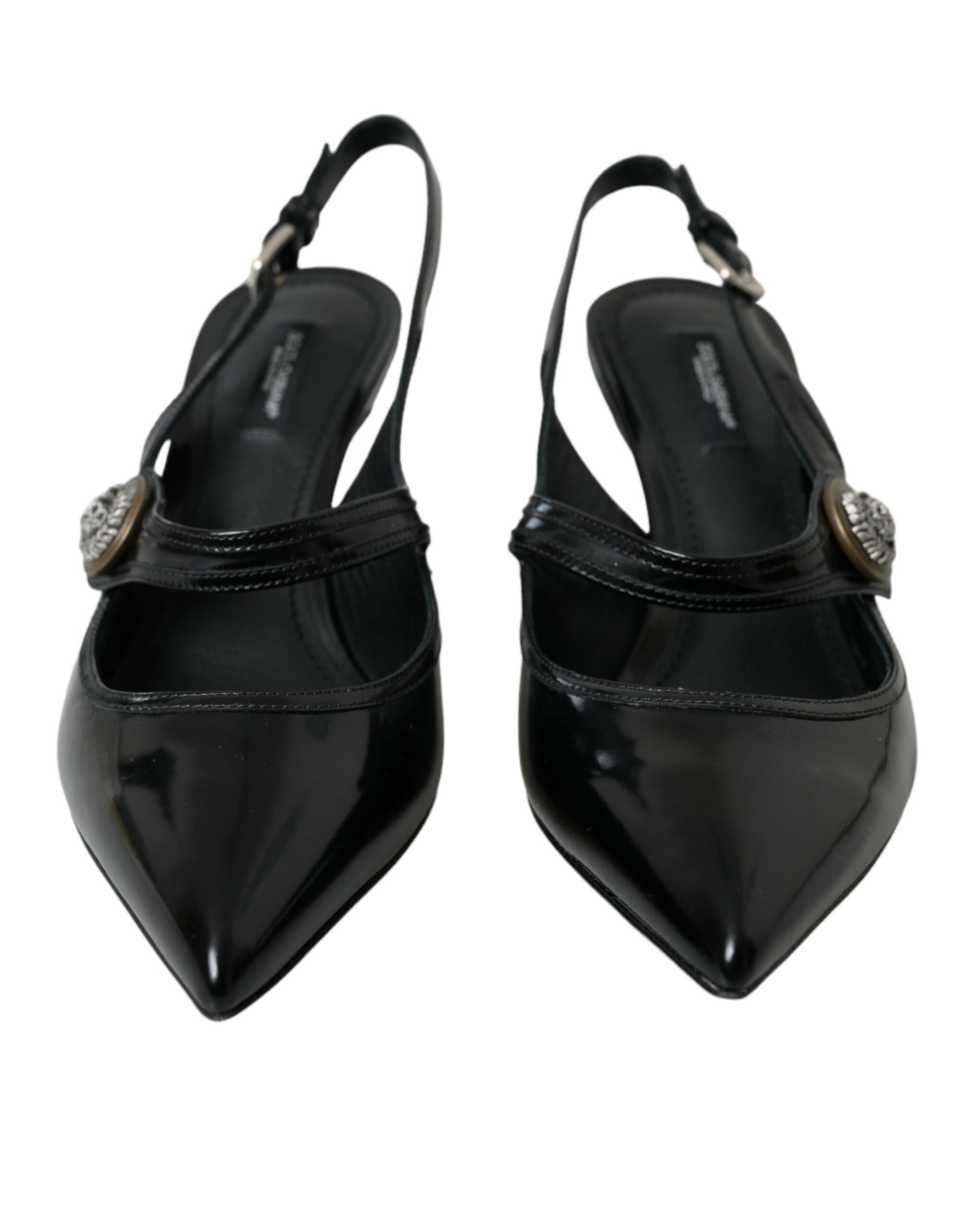 Dolce & Gabbana Black Leather Embellished Slingbacks Shoes