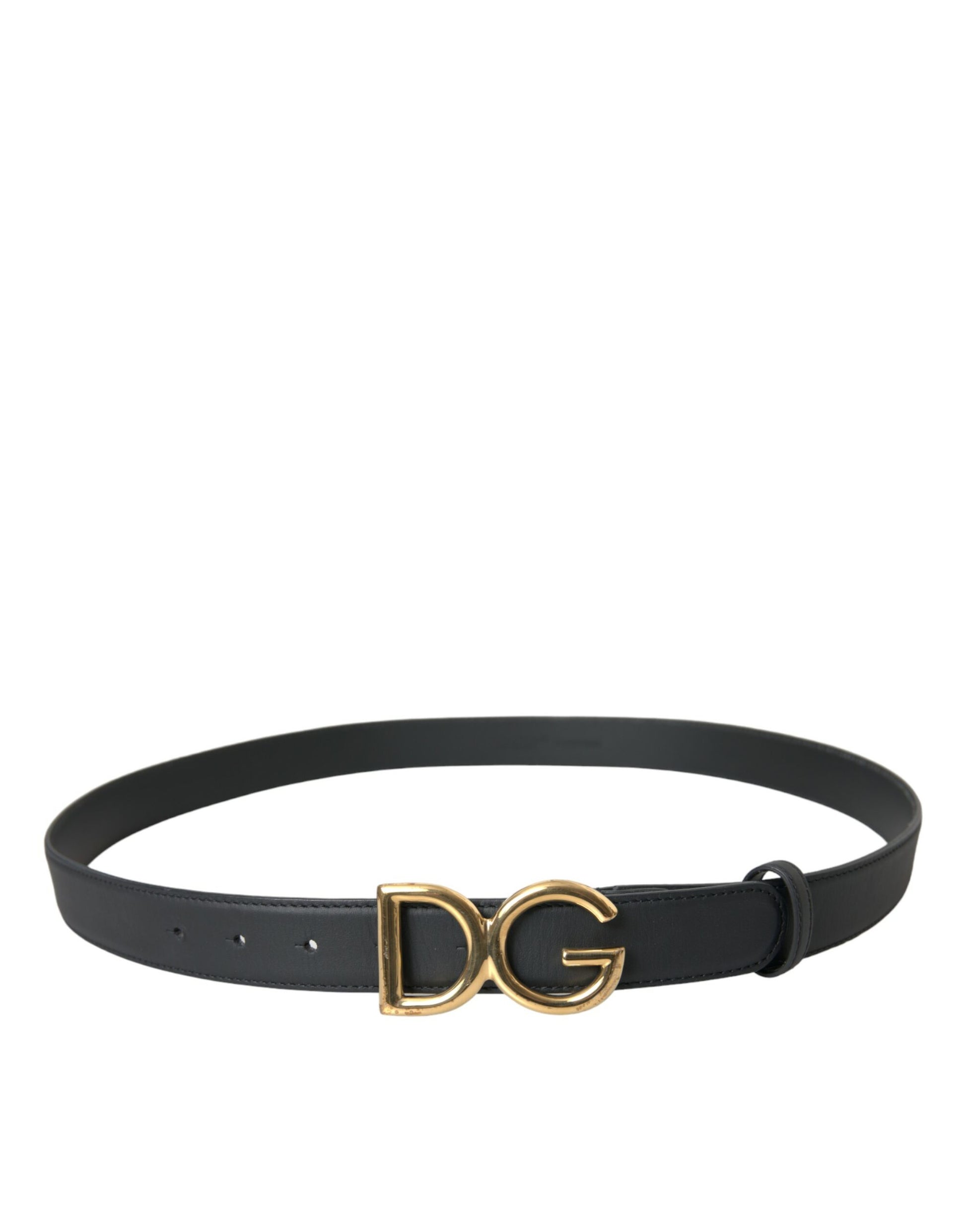 Dolce & Gabbana Black Leather Gold DG Logo Waist Buckle Belt