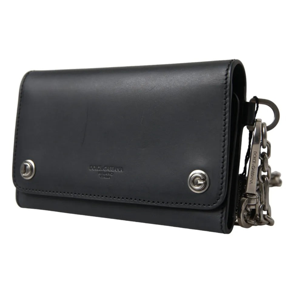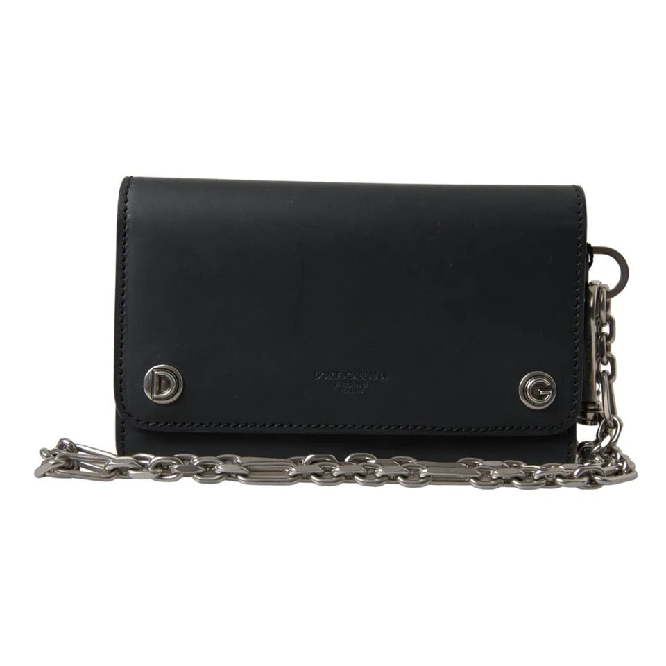 Dolce & Gabbana Black Leather Logo Embossed Men Mini Shoulder Bag