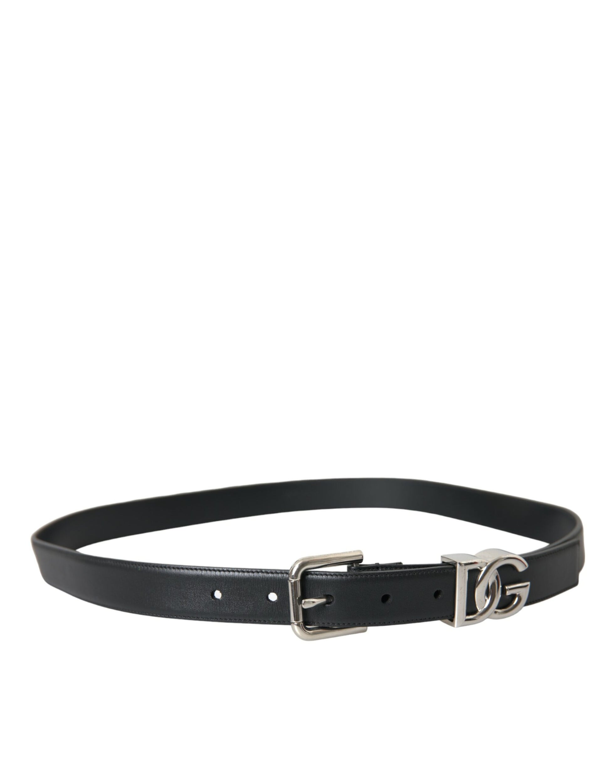 Dolce & Gabbana Black Leather Silver Metal Buckle Belt Men