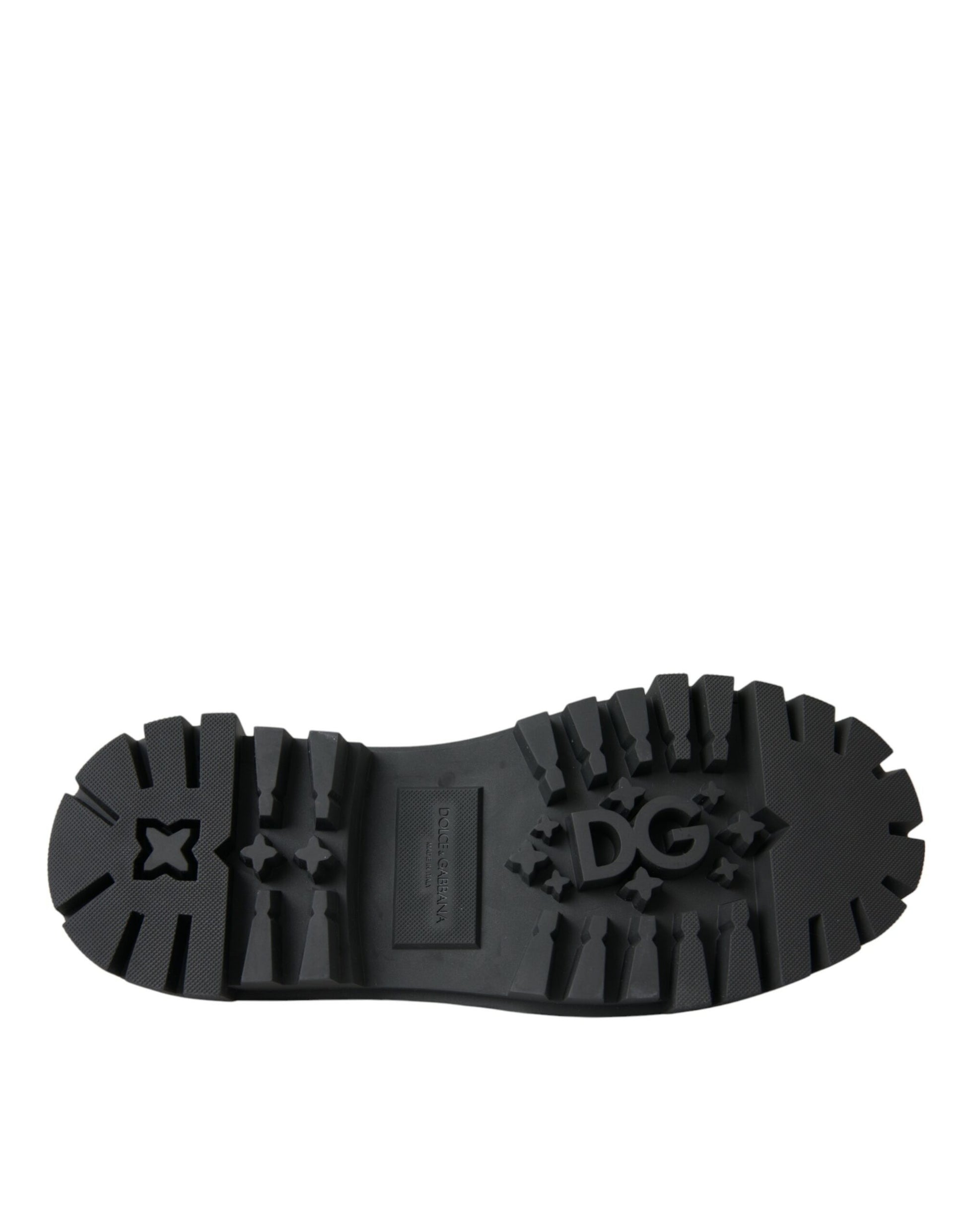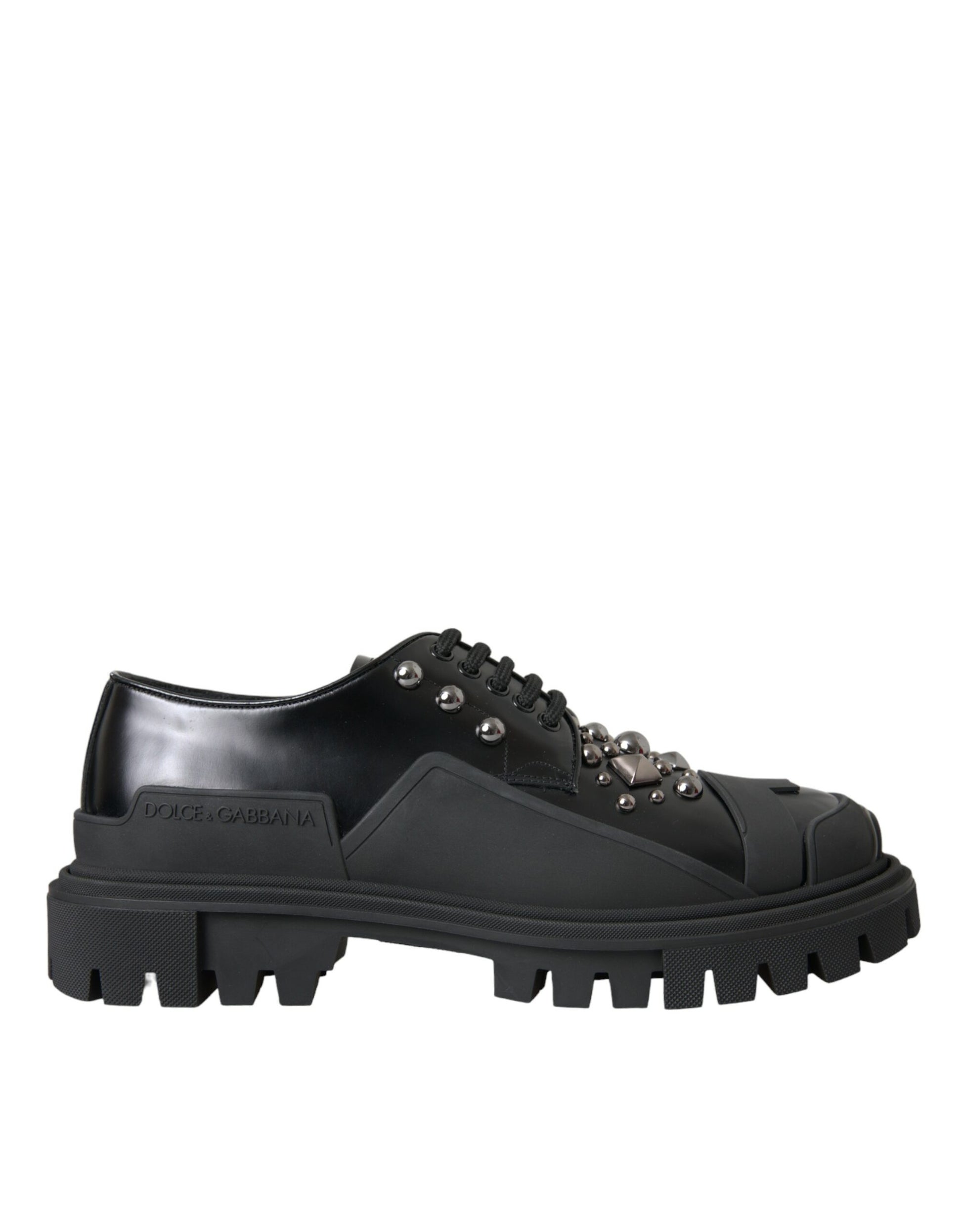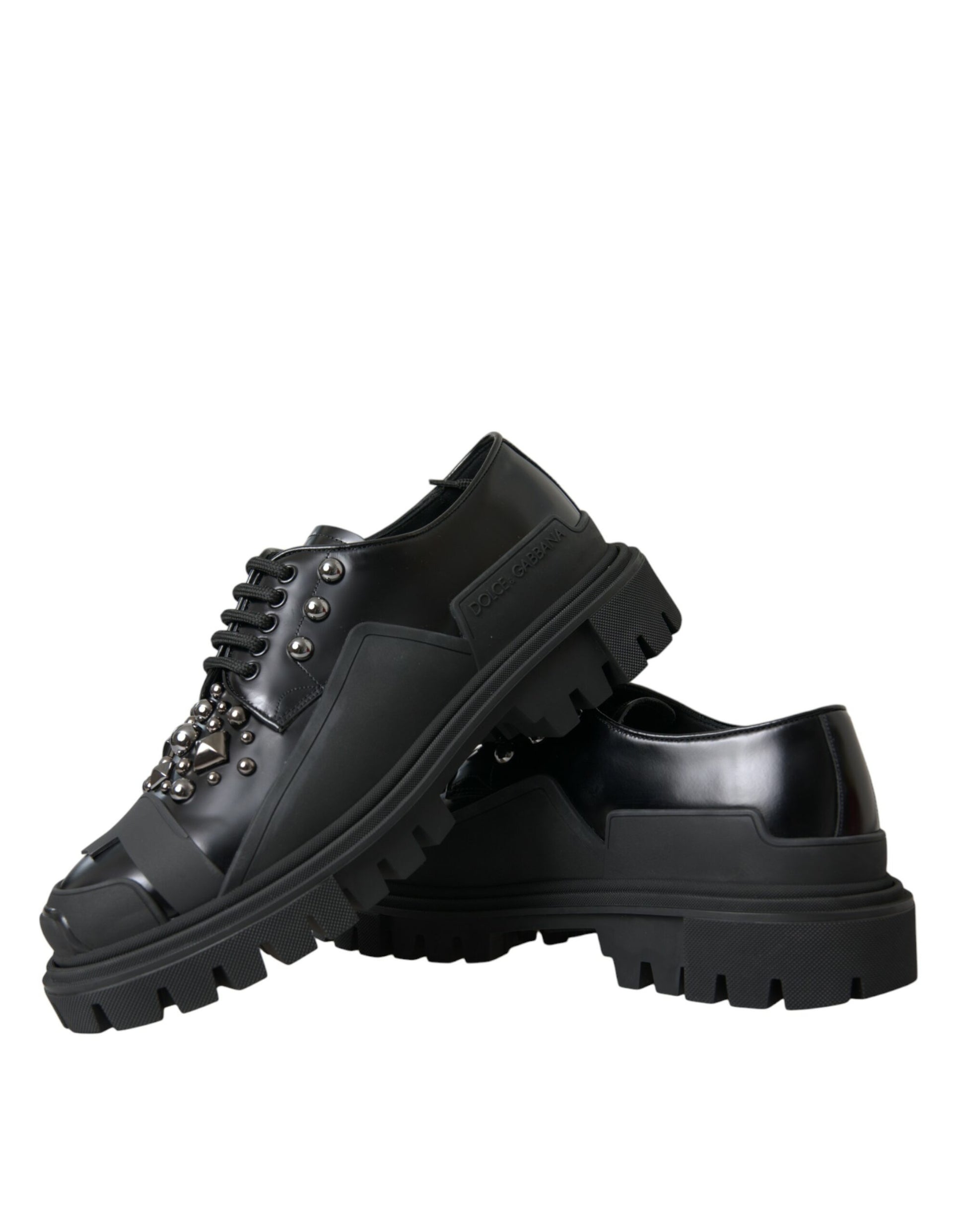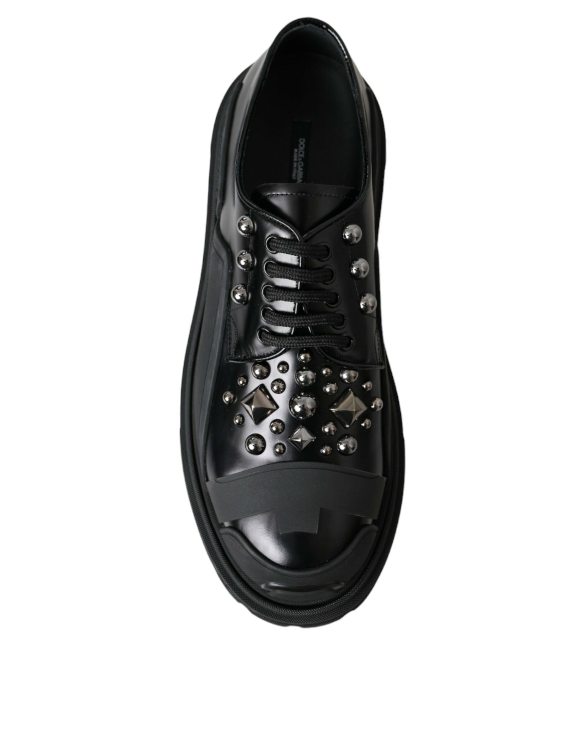 Dolce & Gabbana Black Leather Studded Trekking Sneakers Shoes