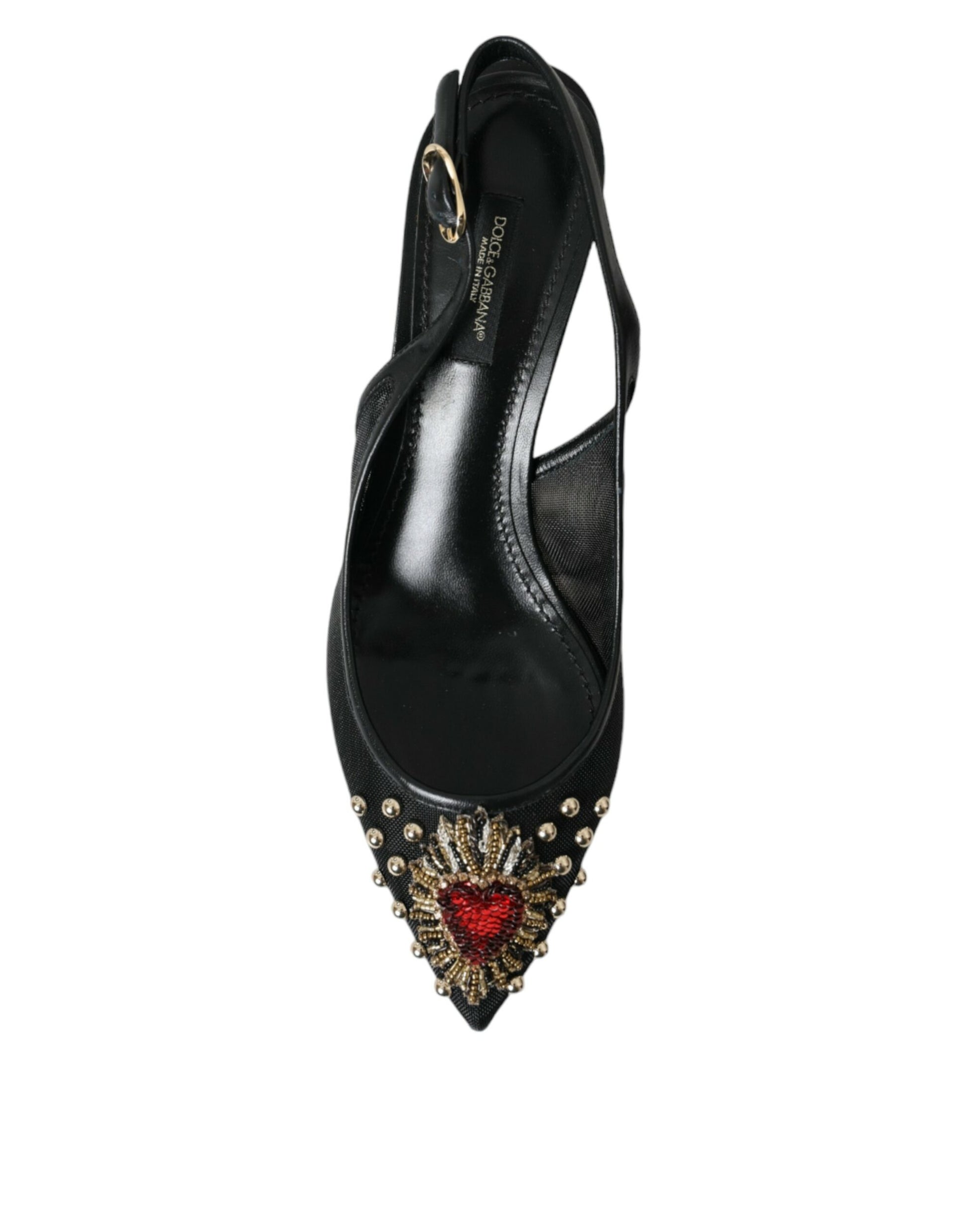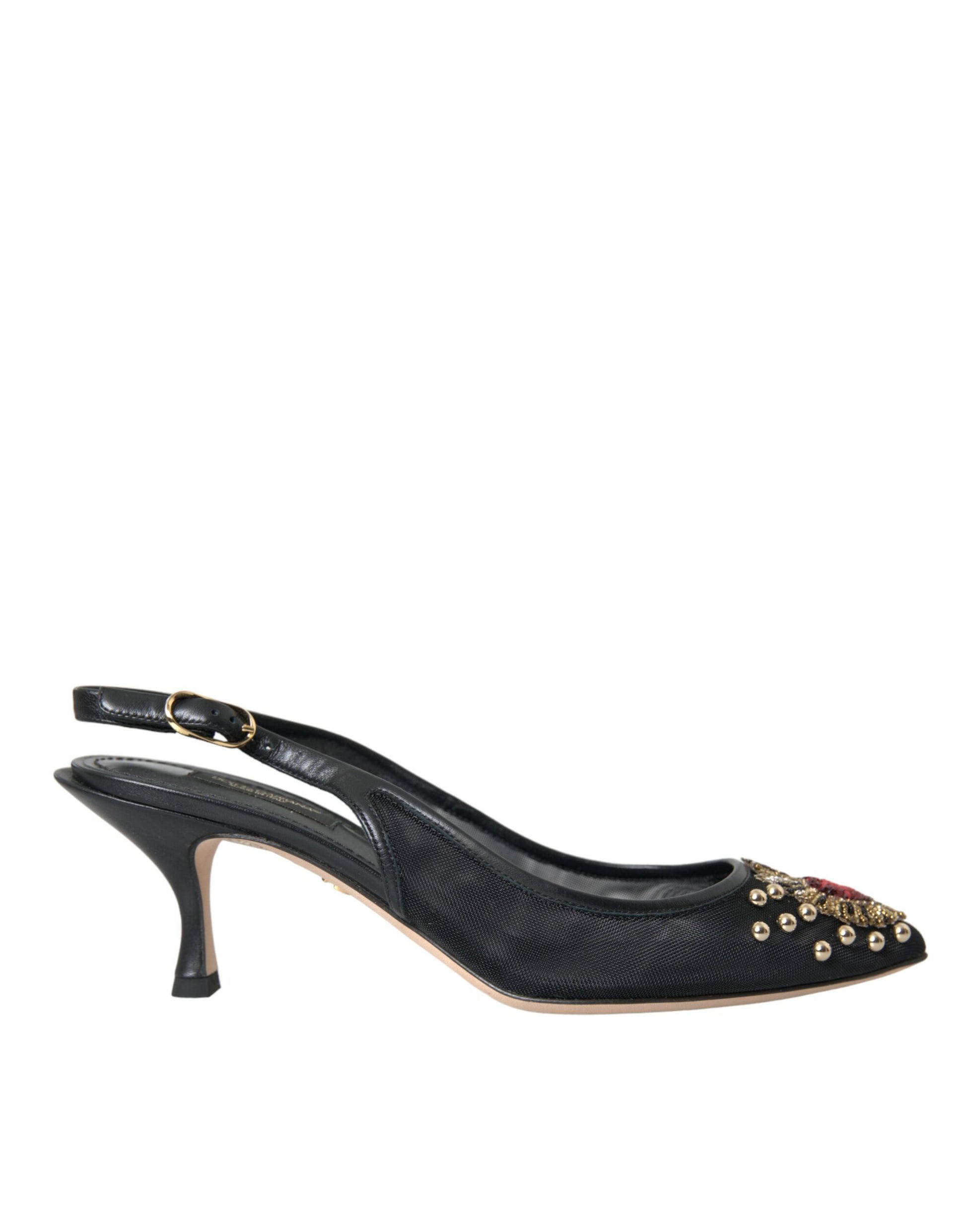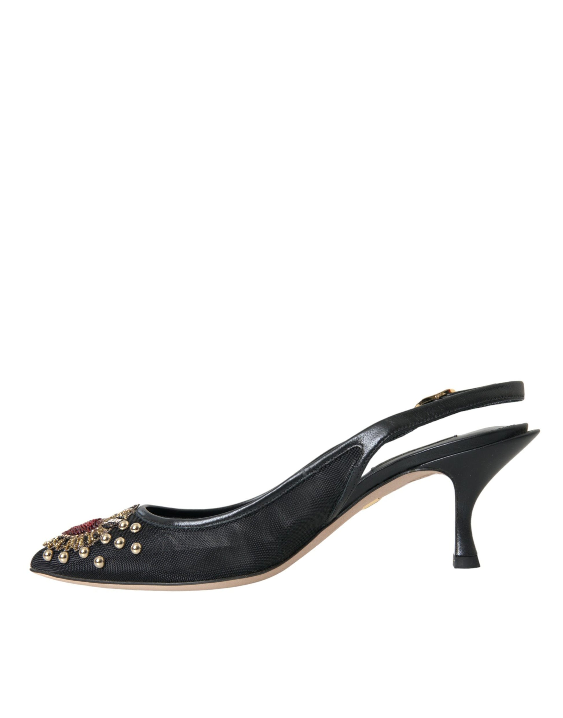 Dolce & Gabbana Black Mesh Embellished Heel Slingbacks Shoes