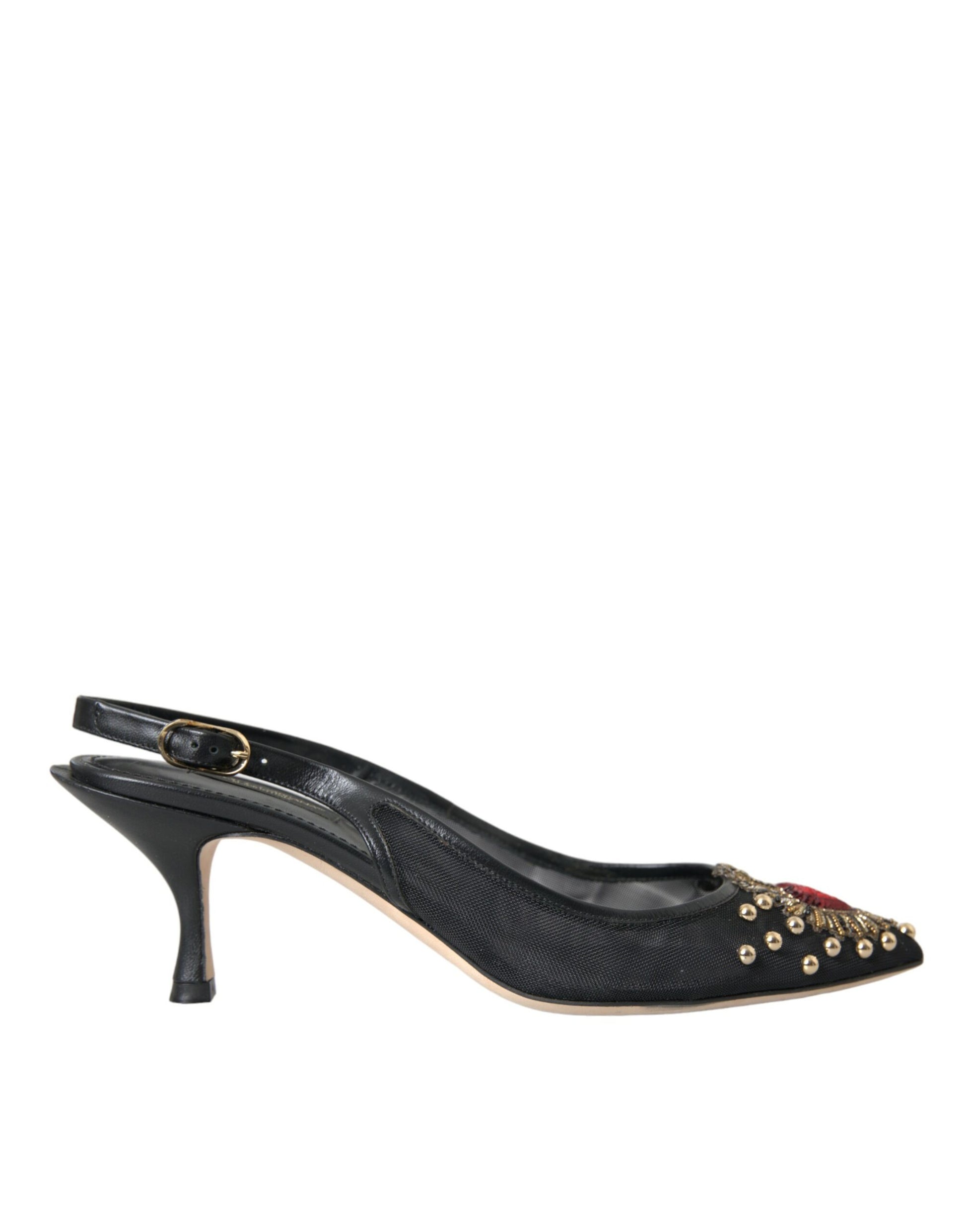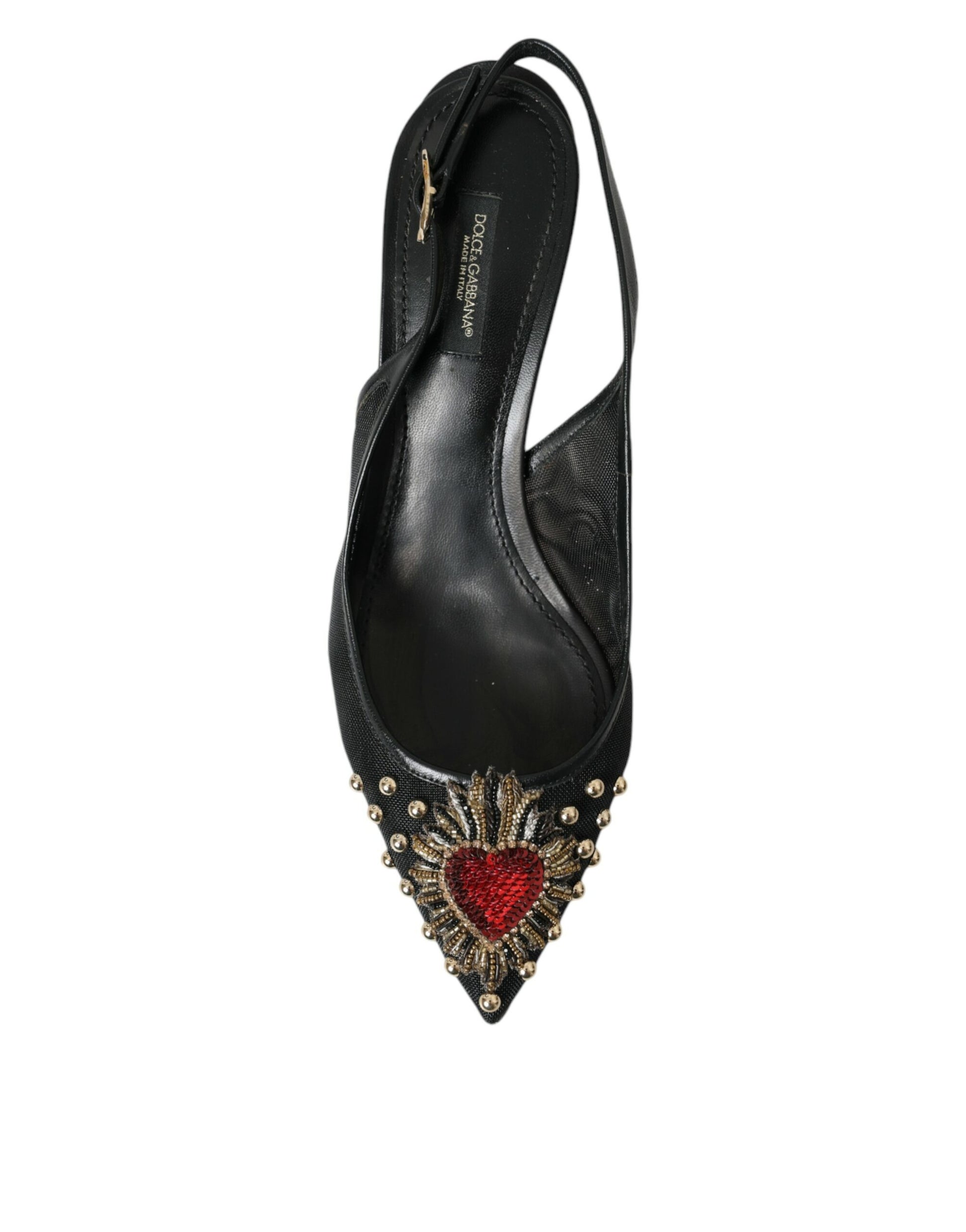 Dolce & Gabbana Black Mesh Embellished Heel Slingbacks Shoes