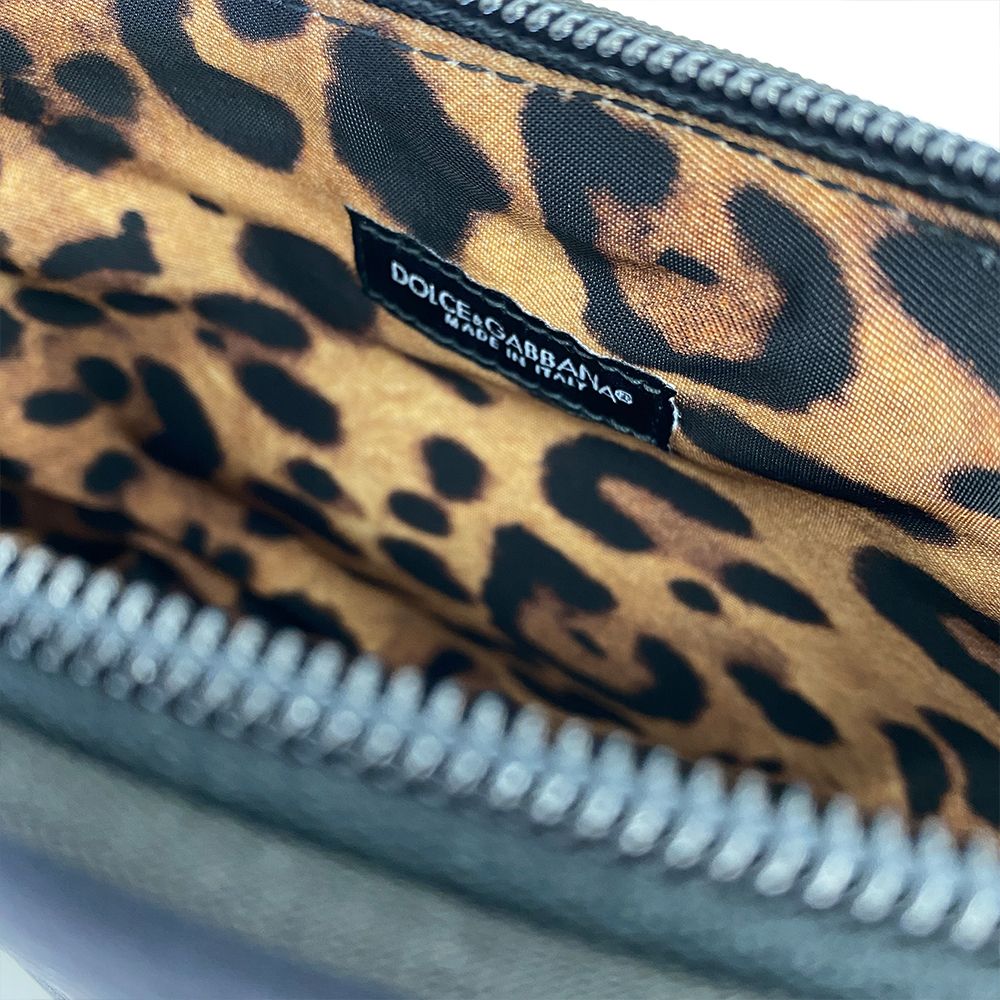 Dolce & Gabbana neoprene clutch bag with leopard-print lined interior, calfskin zipper pulls