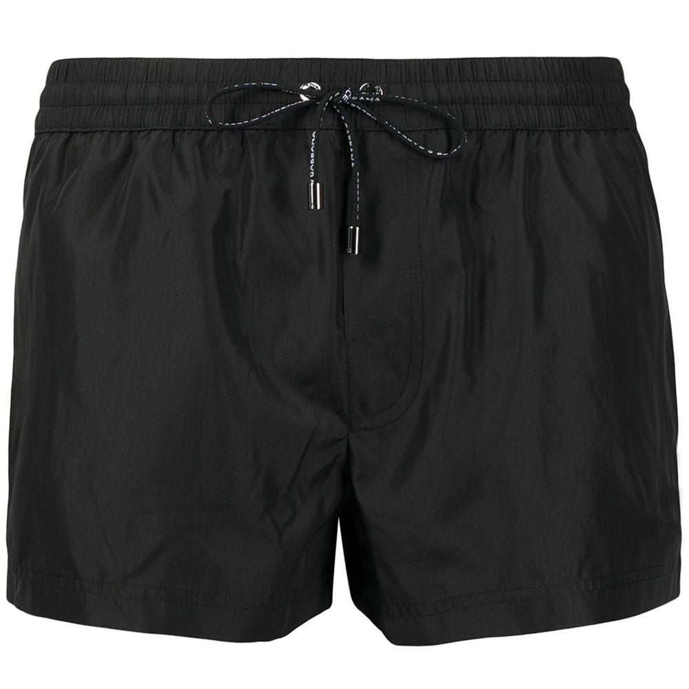 Dolce & Gabbana short shorts swimsuit, brand logo drawstring, zippered back pocket. Made in italy