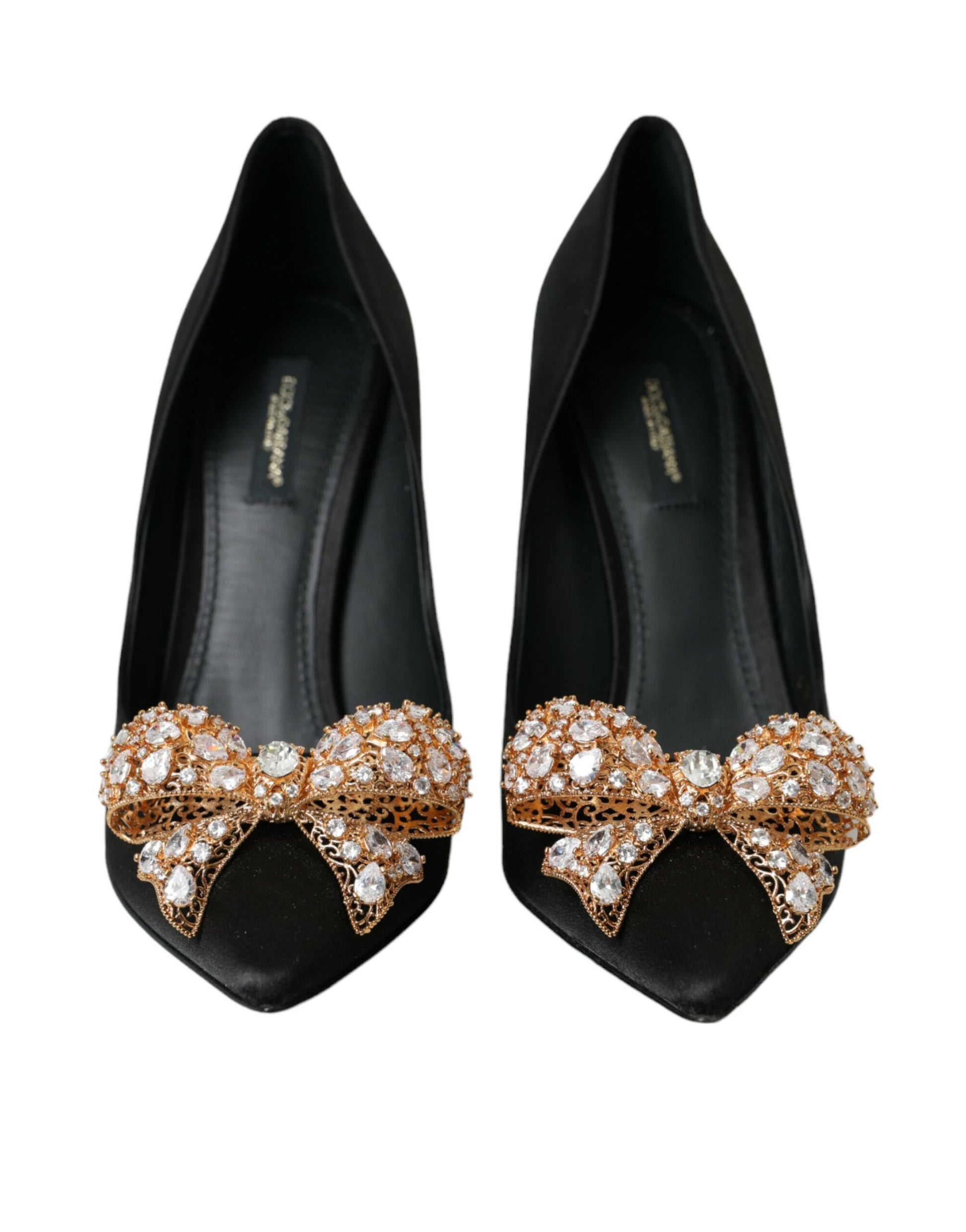 Dolce & Gabbana Black Satin Bow Embellished Heels Pumps Shoes