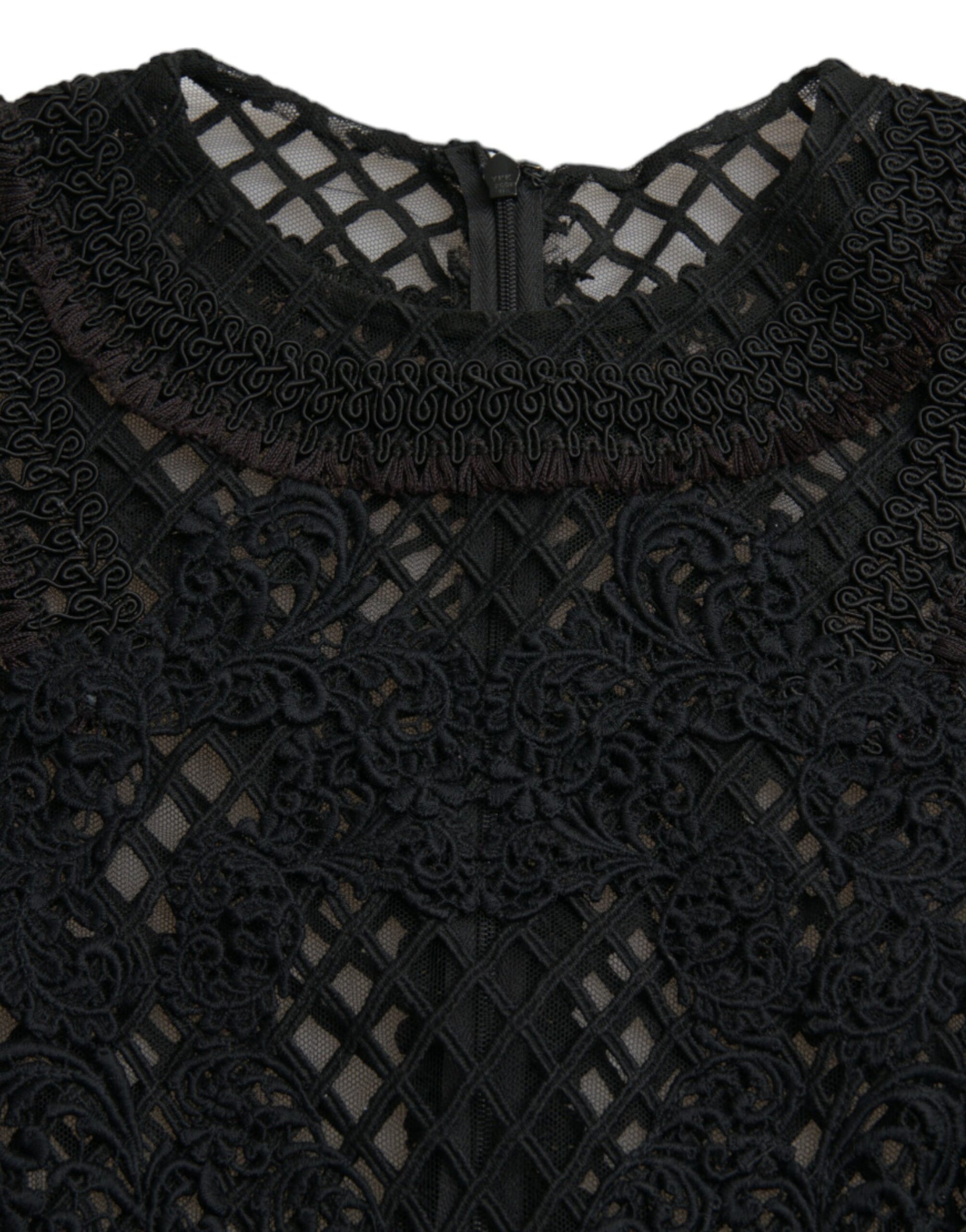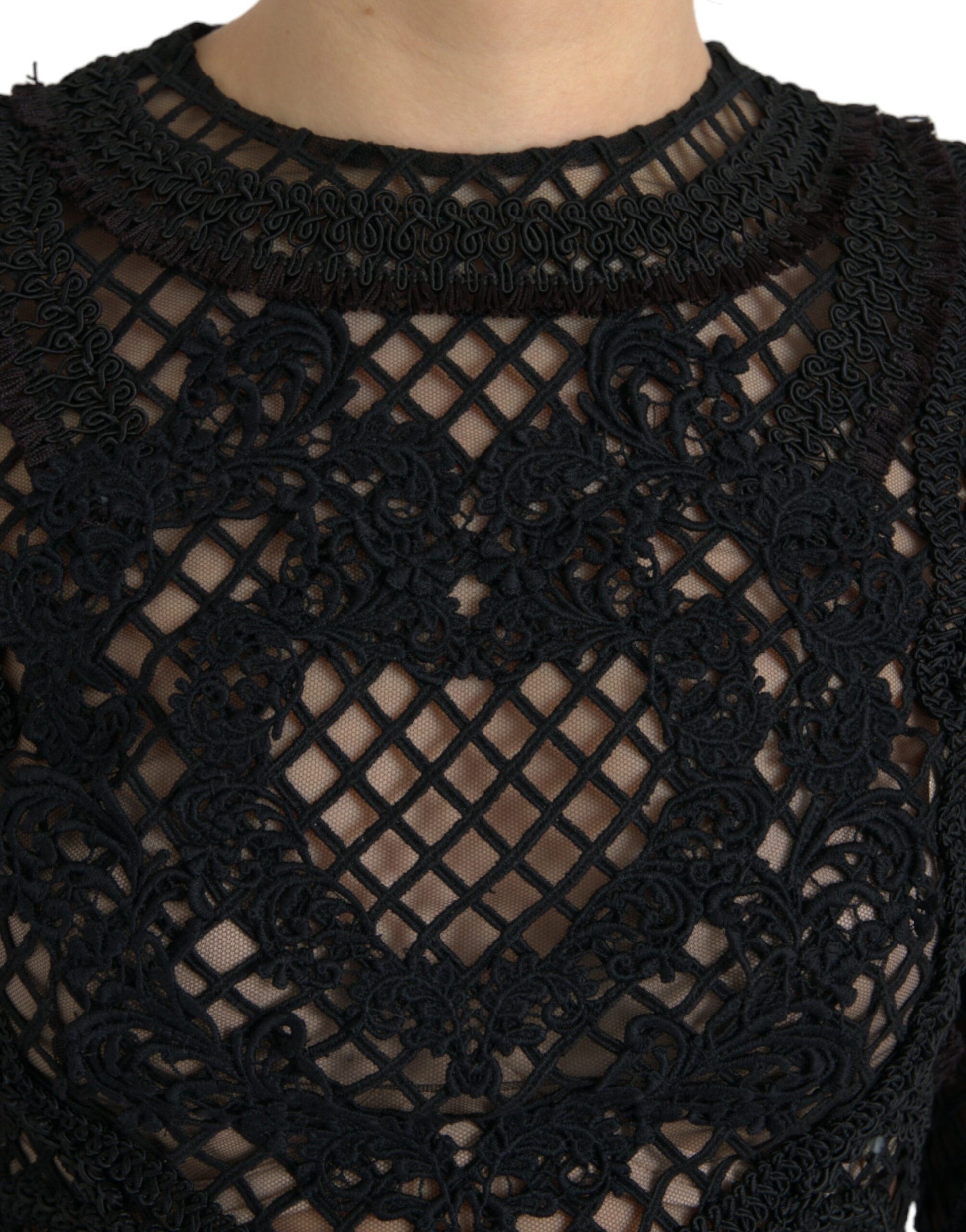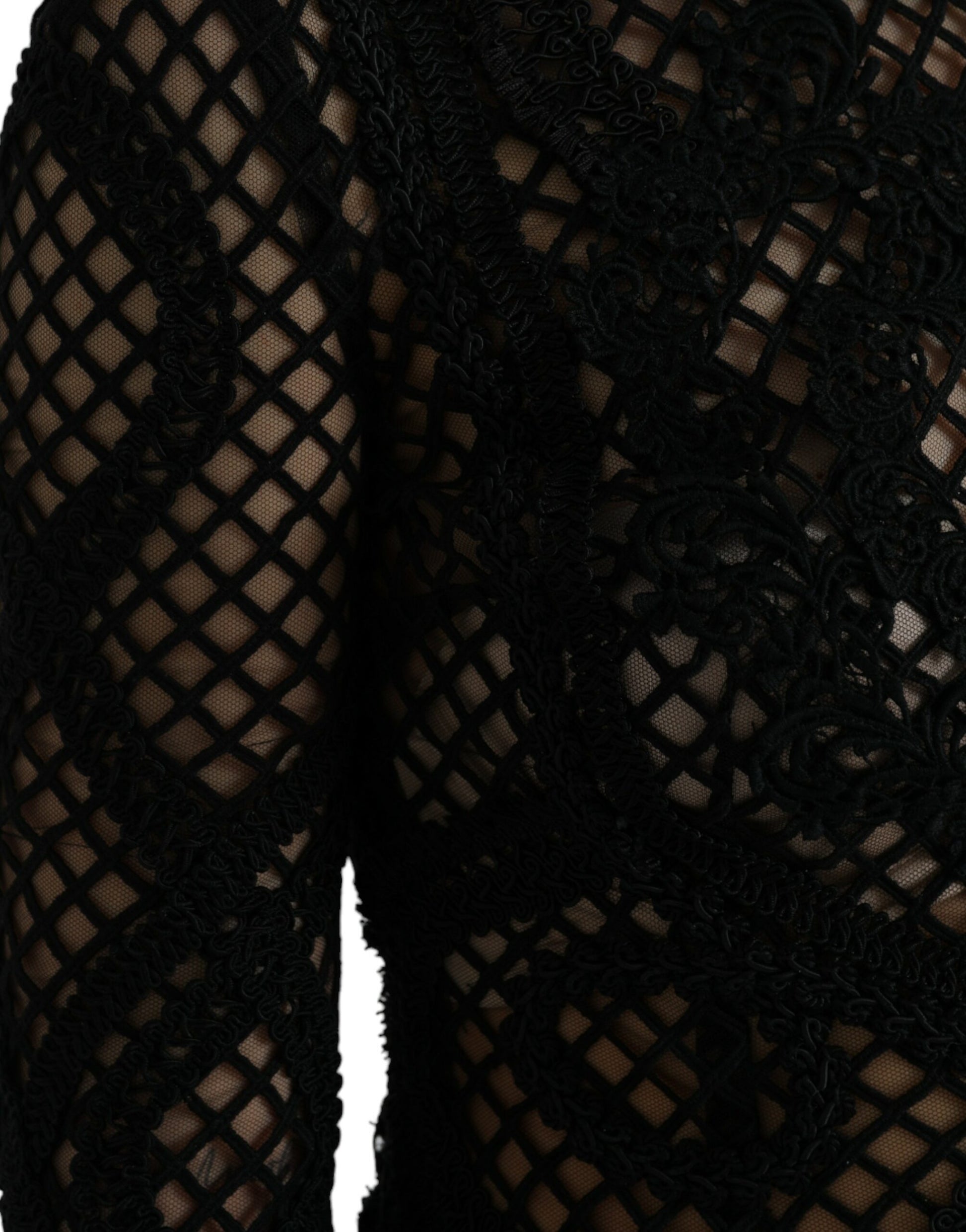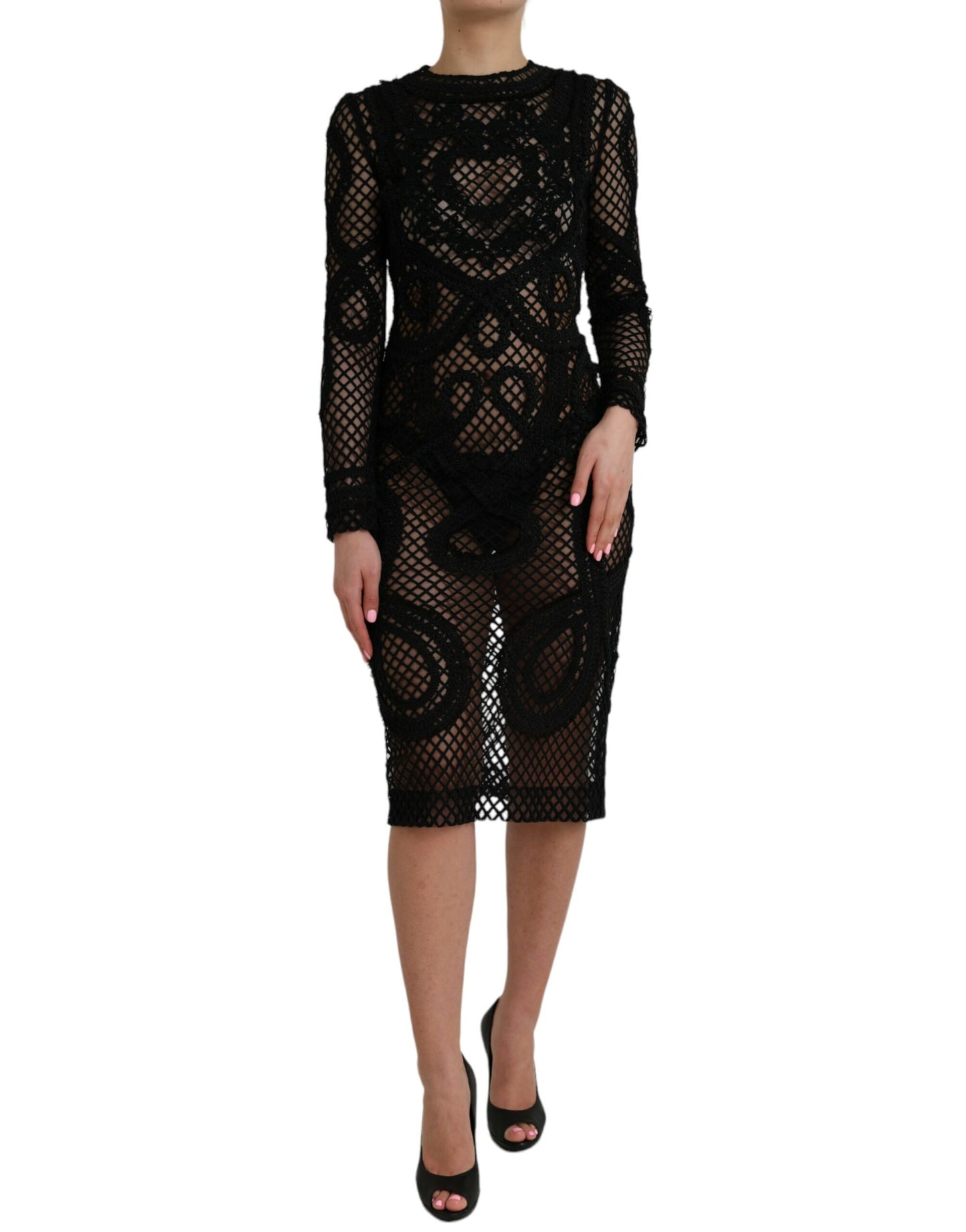 Dolce & Gabbana Black Sheer Long Sleeves Sheath Midi Dress
