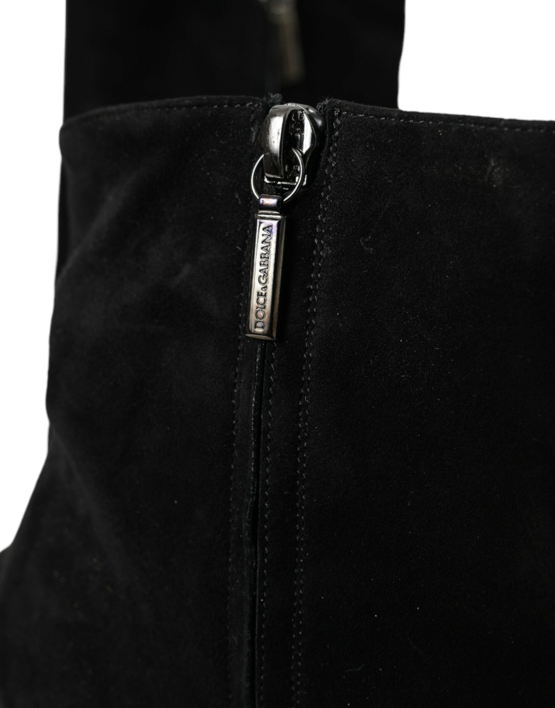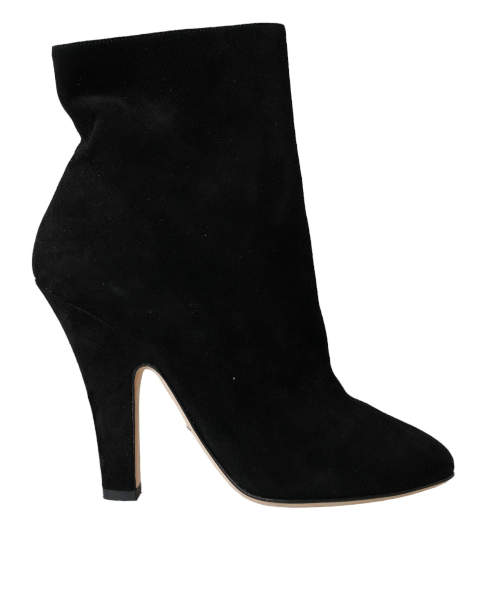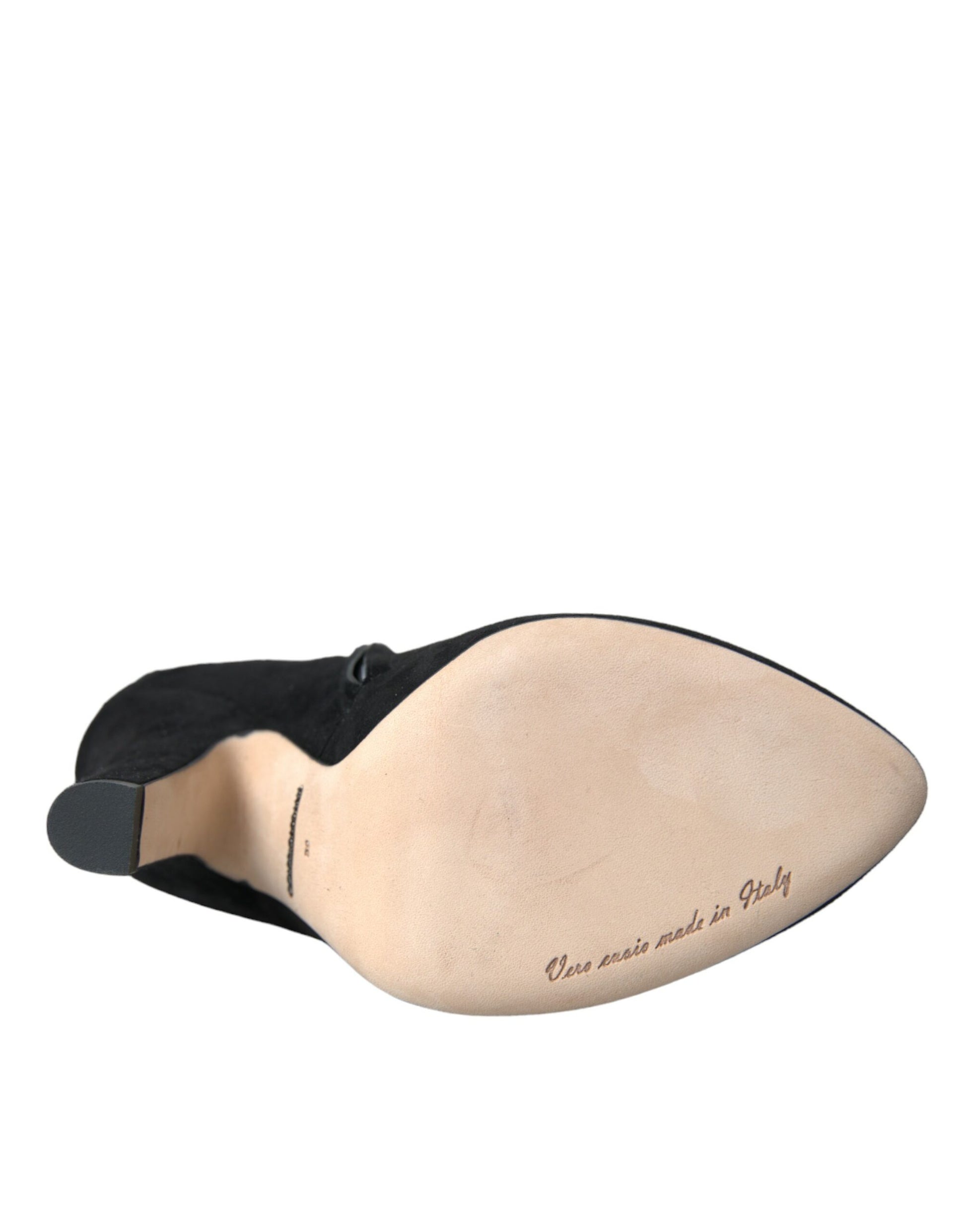 Dolce & Gabbana Black Suede Leather Ankle Heels Boots Shoes