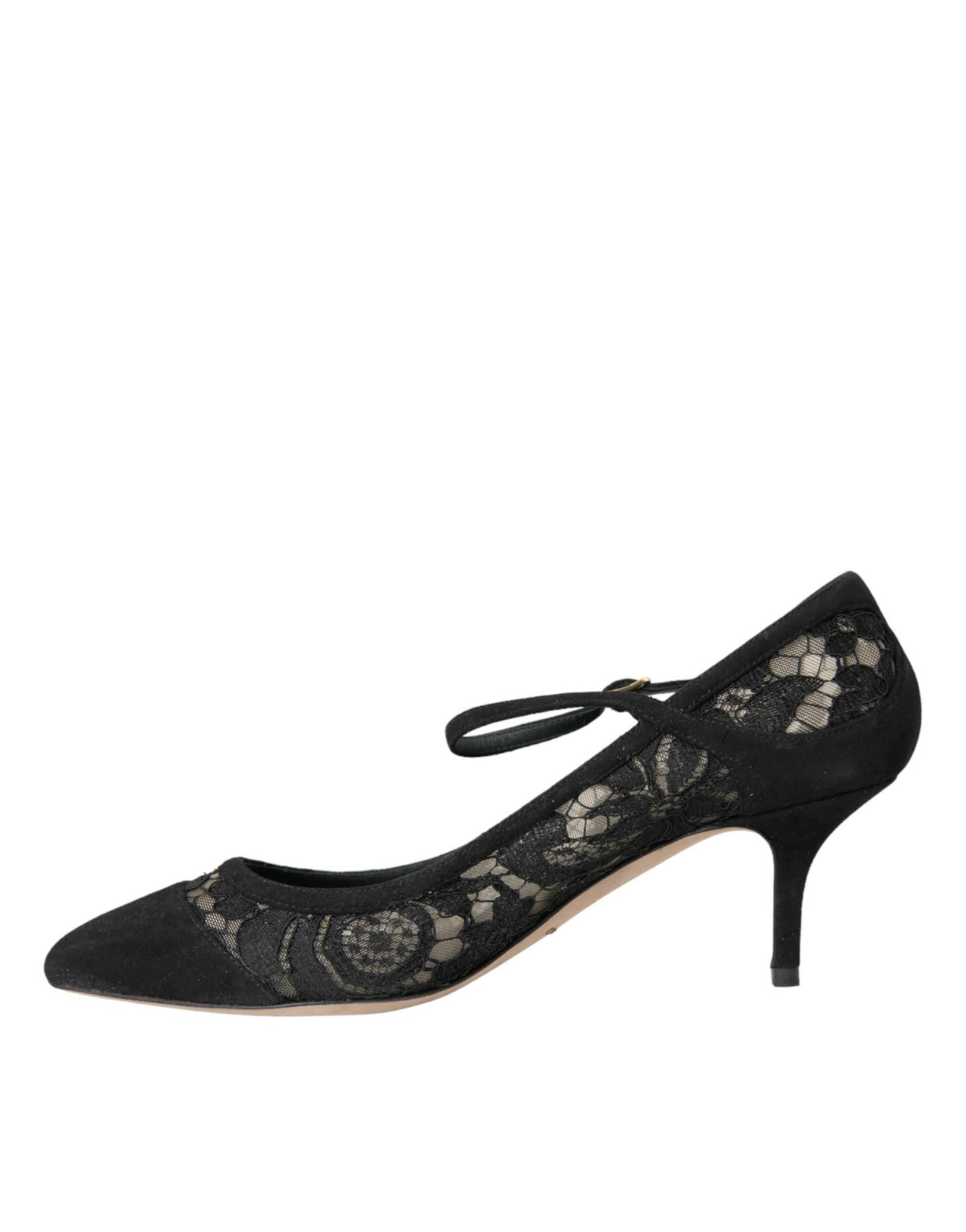 Dolce & Gabbana Black Taormina Lace Mary Janes Pumps Shoes