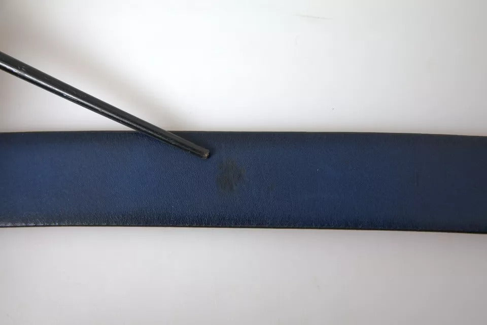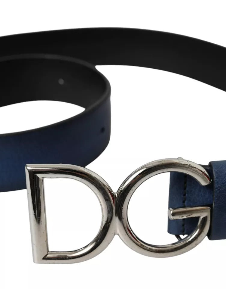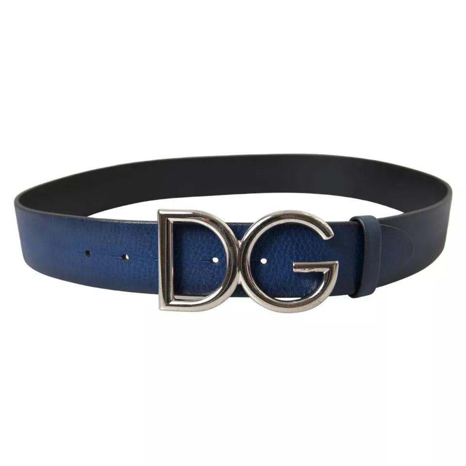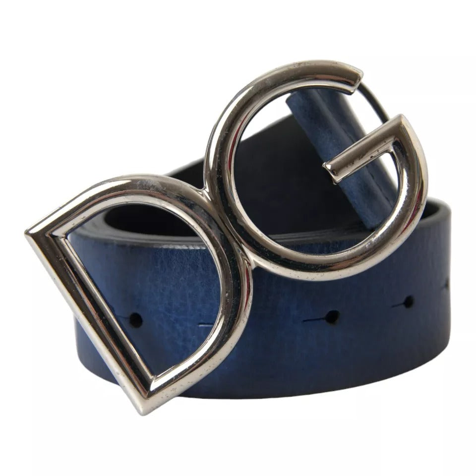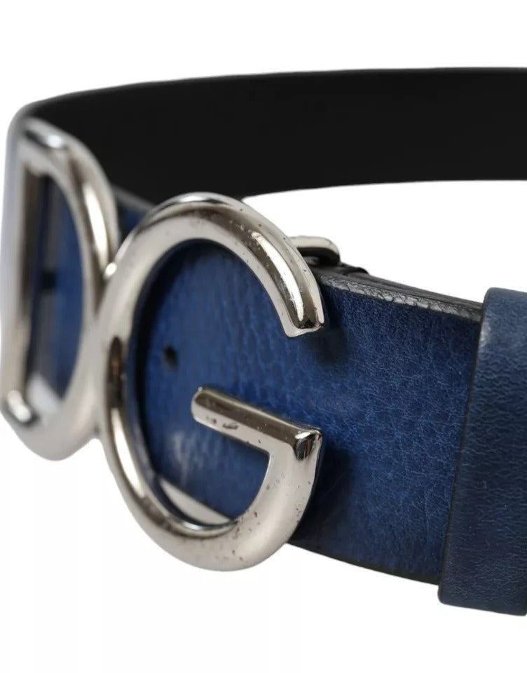 Dolce & Gabbana Blue Calf Leather Silver DG Logo Buckle Belt