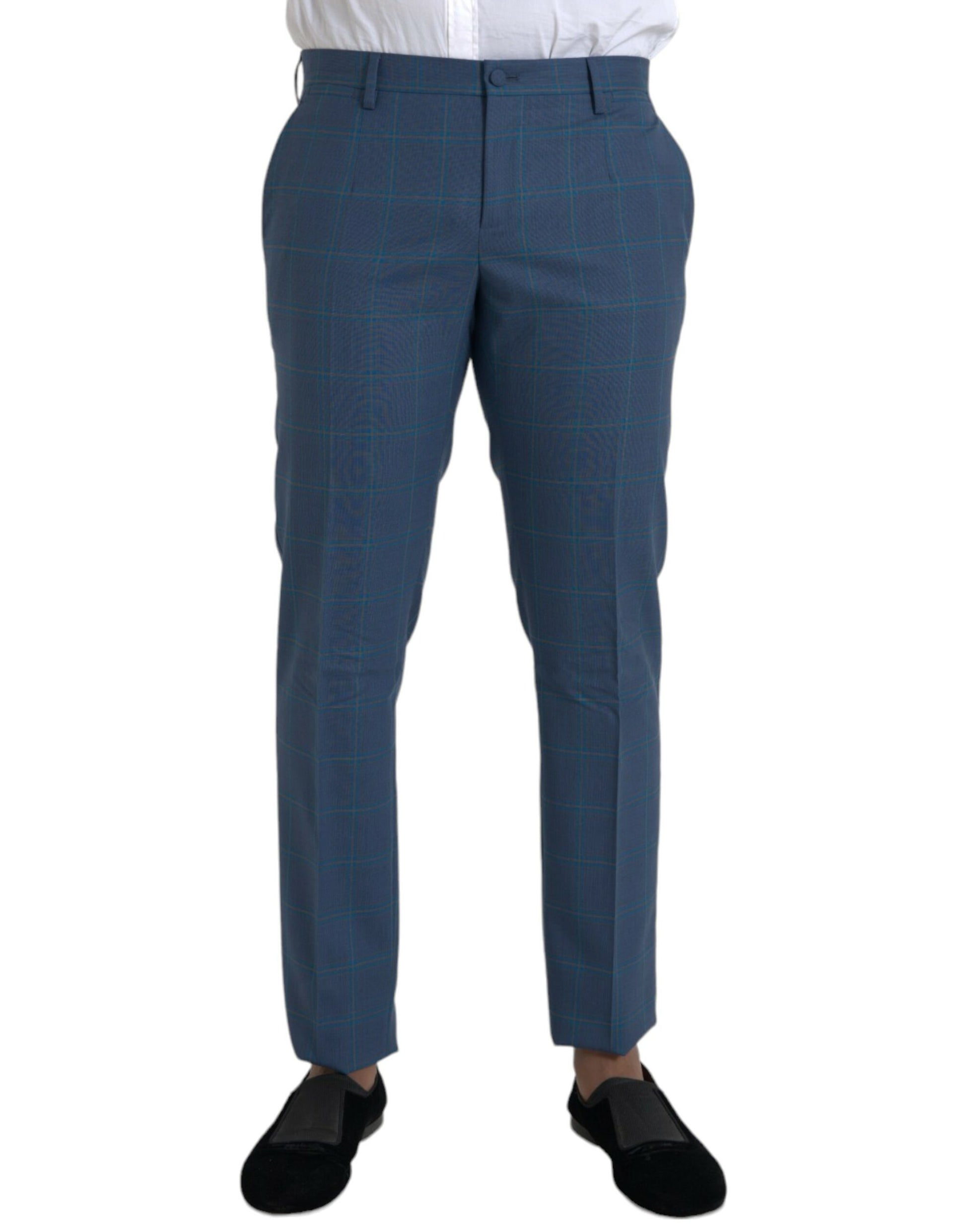 Dolce & Gabbana Blue Checkered Wool Men Dress Pants