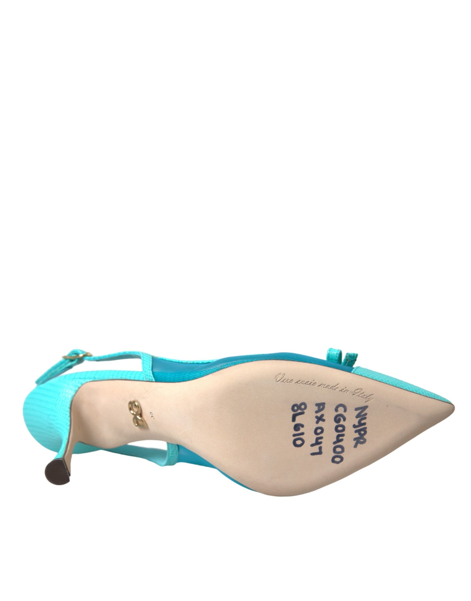 Dolce & Gabbana Blue Leather Mesh High Heels Slingback Shoes