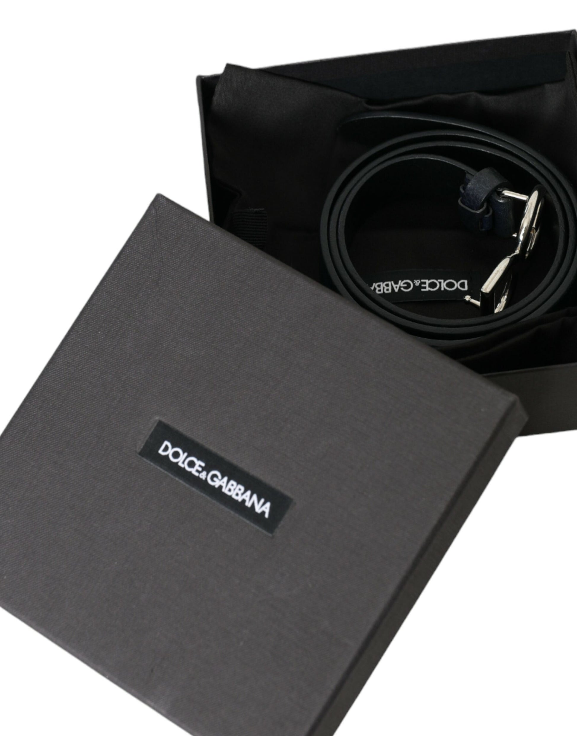 Dolce & Gabbana Blue Leather Silver Metal Logo Buckle Belt Men