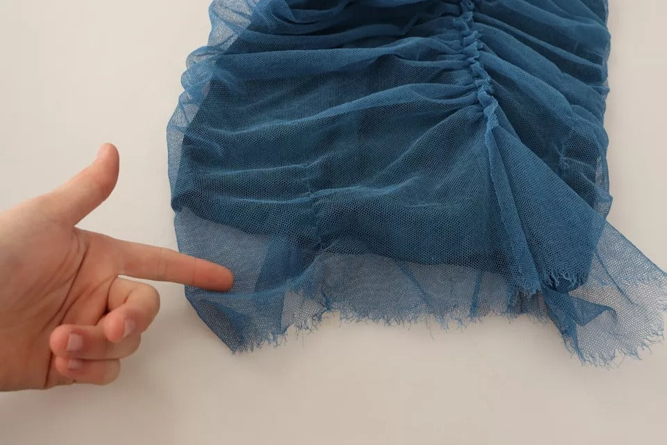 Dolce & Gabbana Blue Mesh Trim Ruched Tulle Sheath Dress