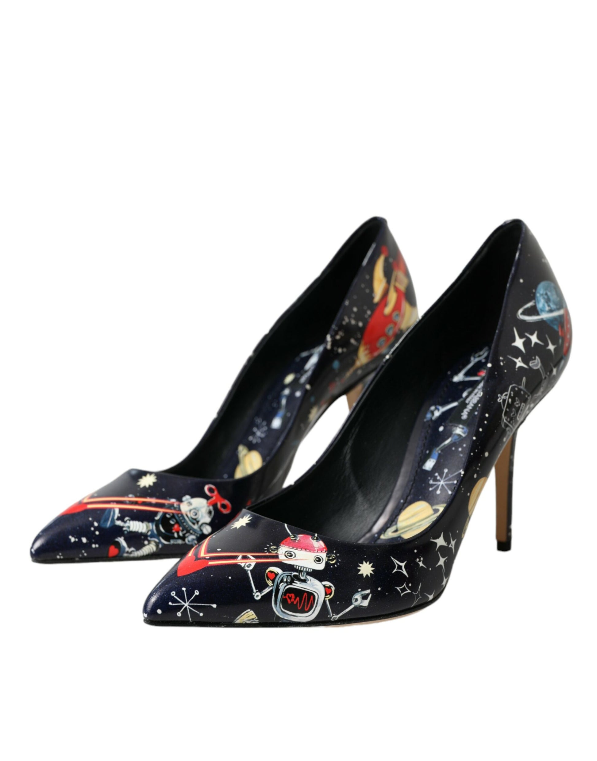 Dolce & Gabbana Blue Space Robot Leather Heels Pumps Shoes