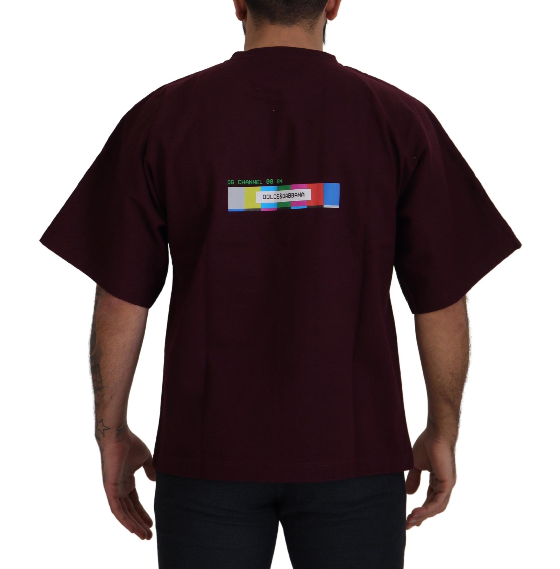 Indulge in the epitome of luxury casual wear with this elegant and vibrant Bordeaux Crewneck T-shirt from the prestigious house of Dolce & Gabbana. This exquisite piece is perfect for adding a touch of class to your everyday wardrobe while ensuring comfort with its soft, high-quality cotton material. Accentuated with the iconic DG TV CHANNEL PRINT, this T-shirt elevates a classic silhouette with contemporary flair. Exuding Italian craftsmanship, it’s a staple piece that harmoniously blends luxury with relaxed styling.