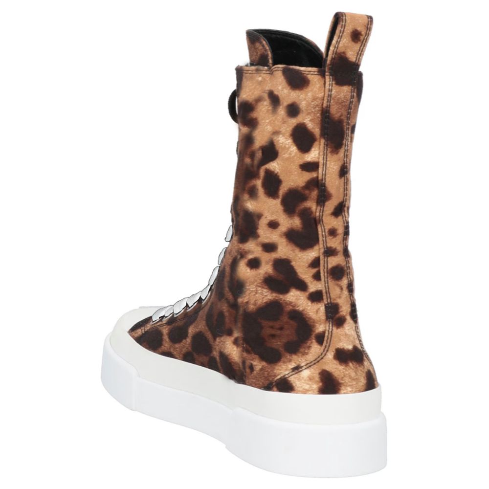 Dolce & Gabbana leopard print canvas and calfskin high top sneakers inside, white rubber sole, rubberized toe, contrasting white laces