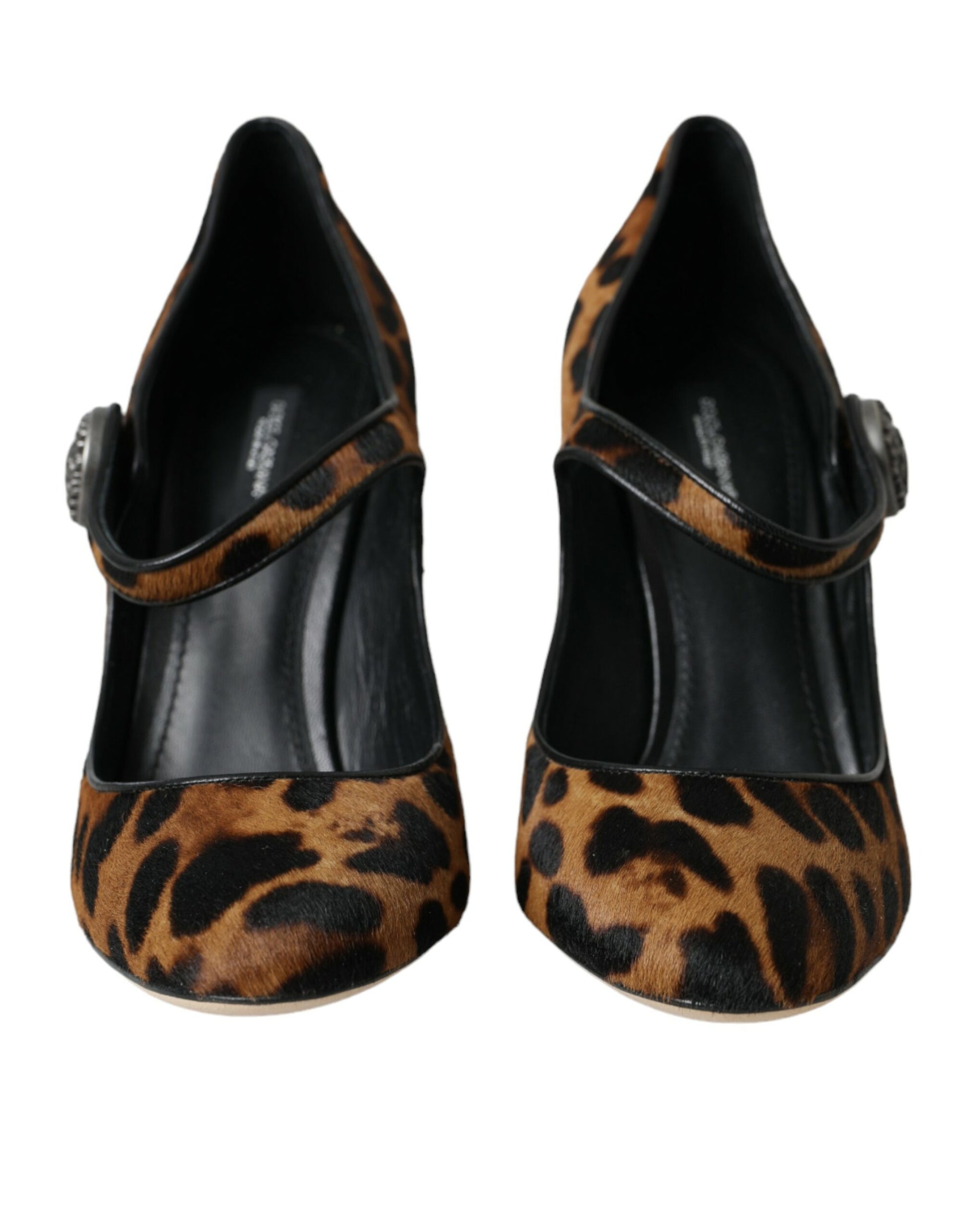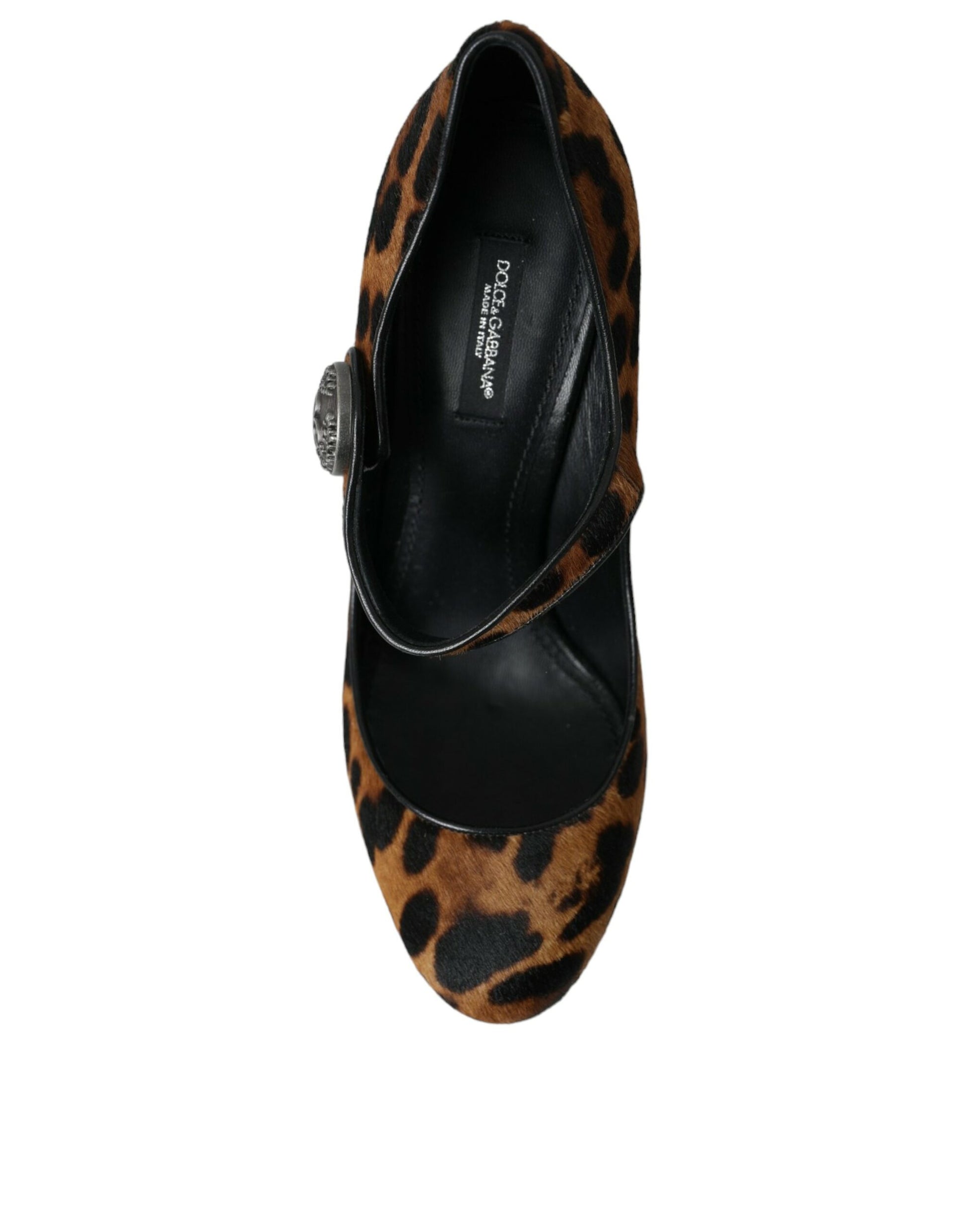 Dolce & Gabbana Brown Leopard Calf Hair Mary Jane Pumps Shoes