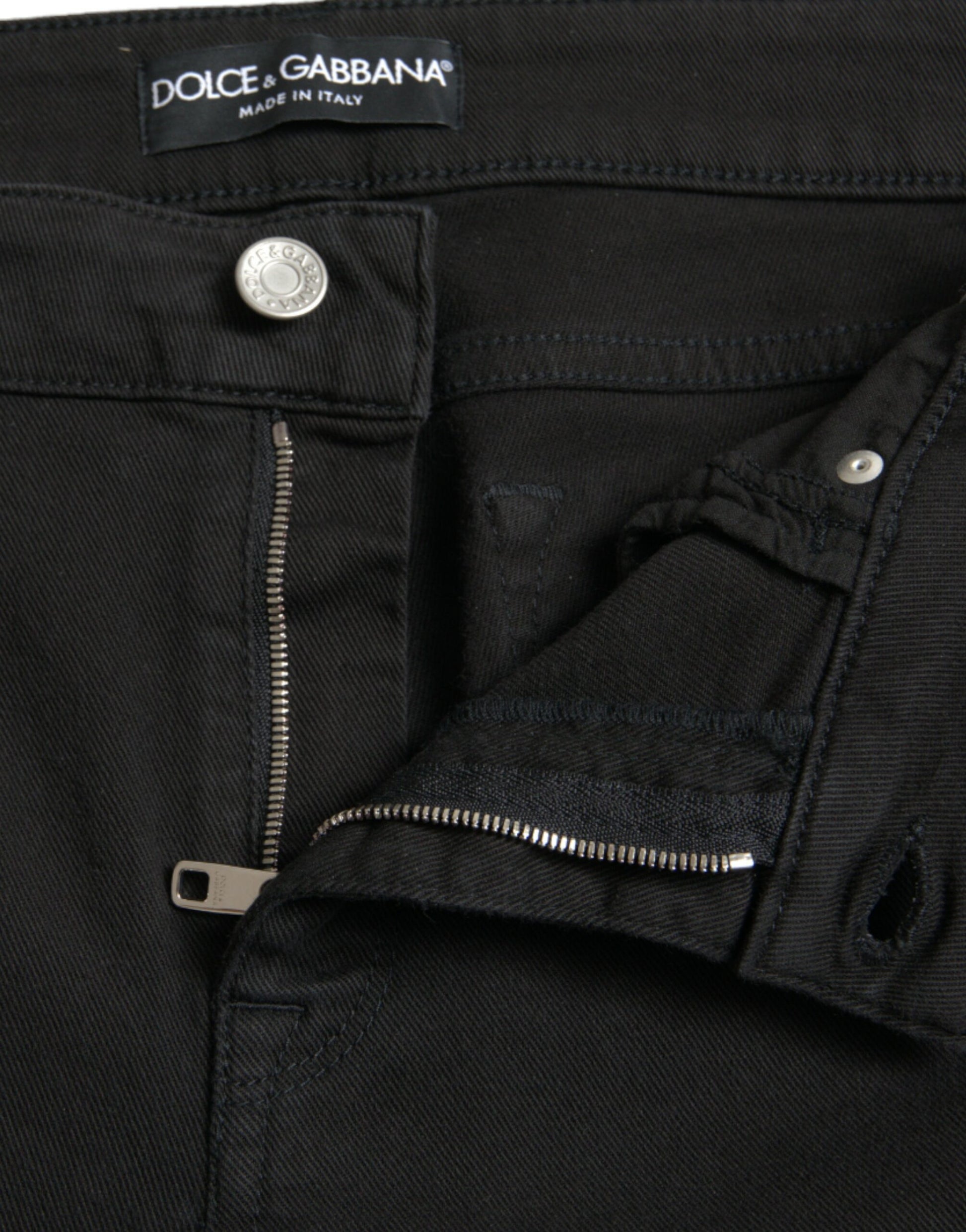 Step into sleek Italian style with these luxurious Dolce & Gabbana black denim jeans. Perfect for elevating your everyday chic, these jeans feature a flattering mid waist fit and a comfortable stretch composition. Finished with the brand’s signature logo details and a practical zipper closure, these jeans blend exquisite design with high comfort.