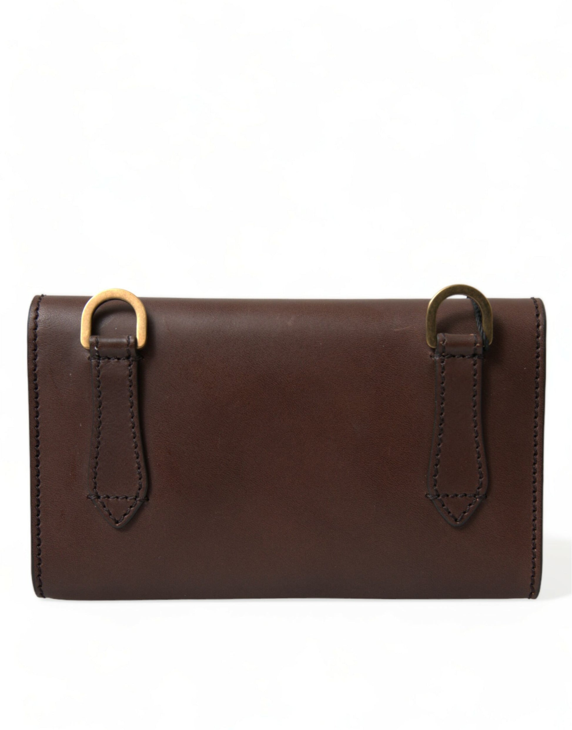 Dolce & Gabbana Chic Brown Leather Shoulder Bag with Gold Detailing