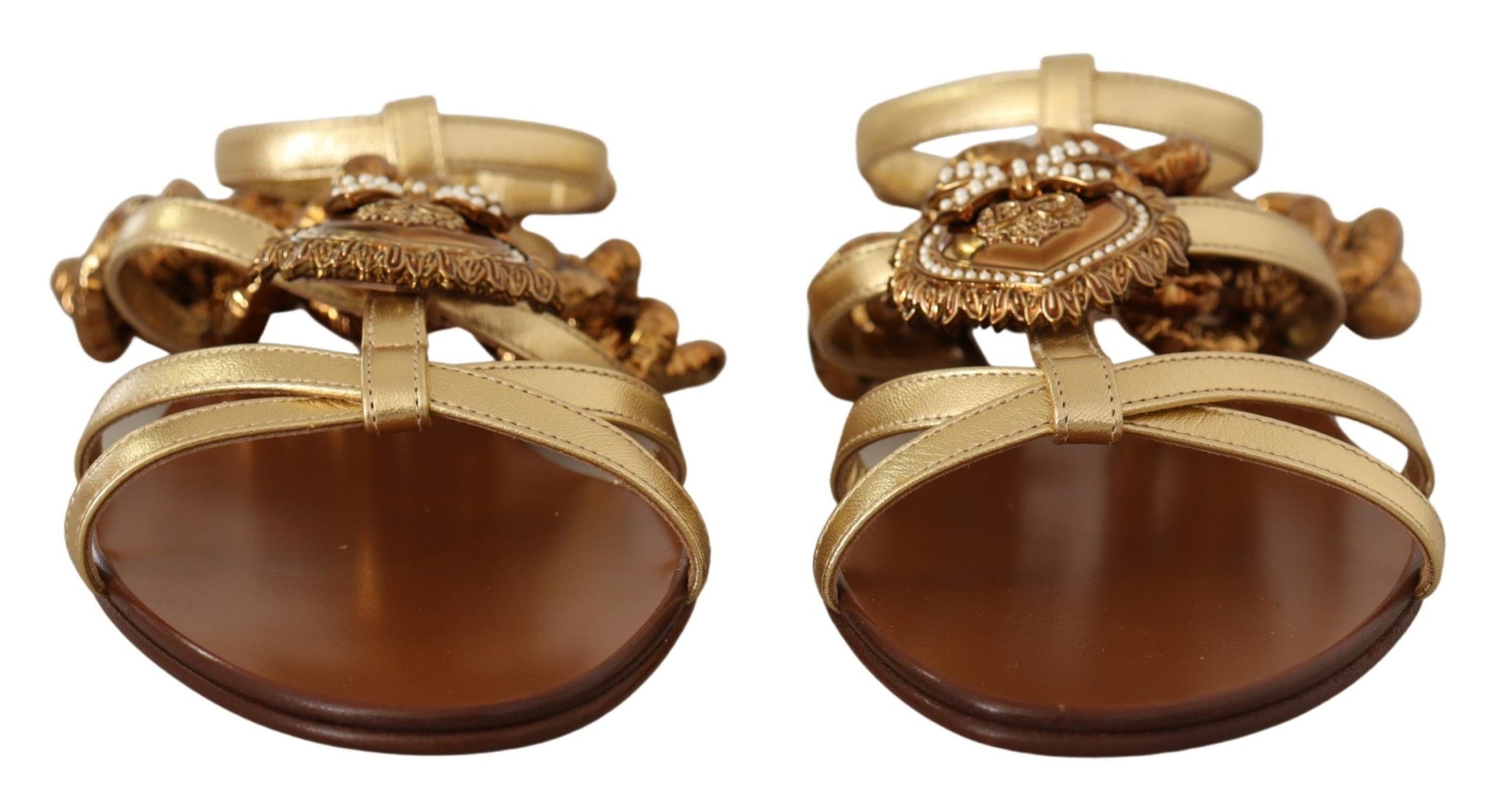 Dolce & Gabbana Chic Gladiator Flats with Heart and Chain Accents