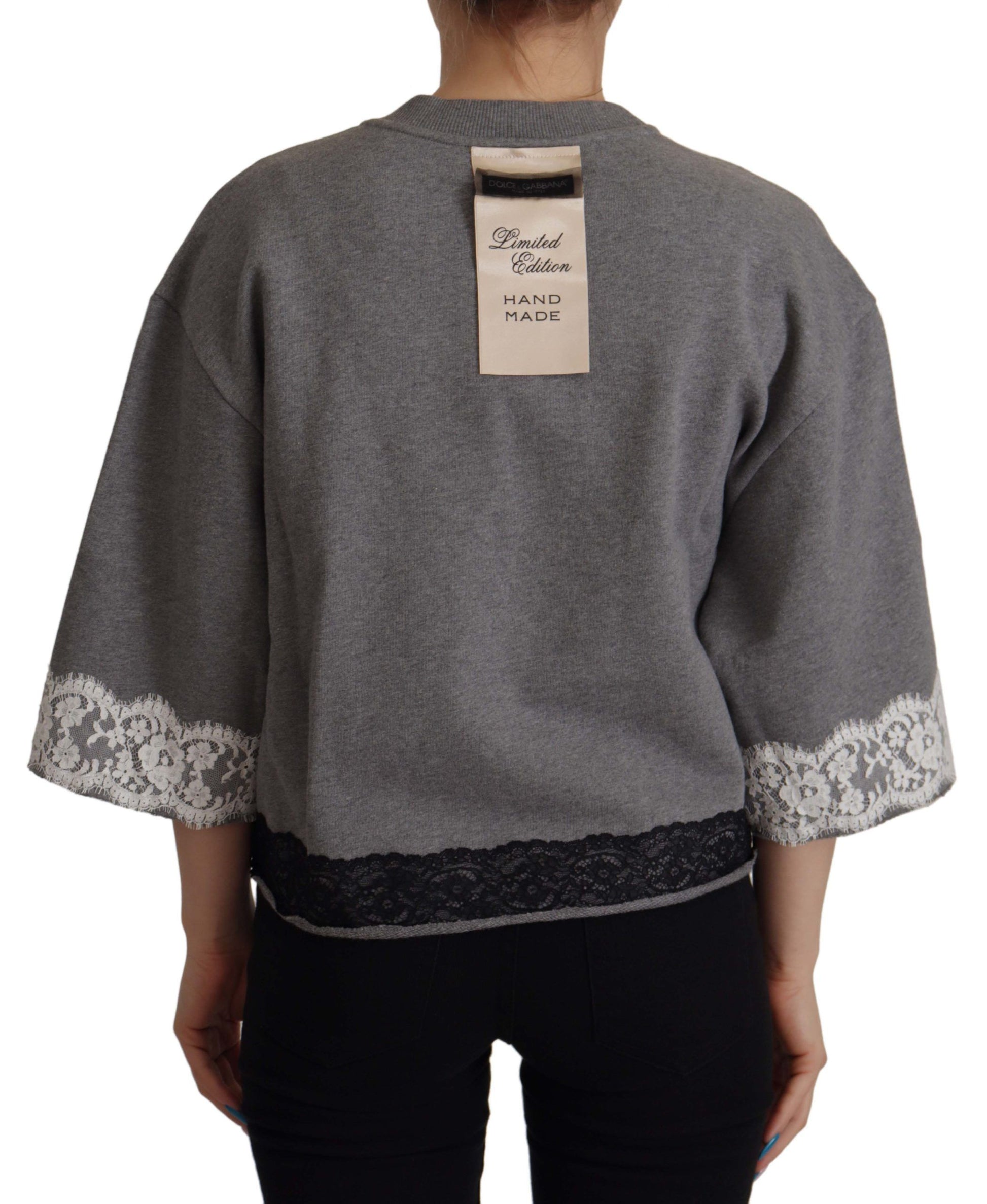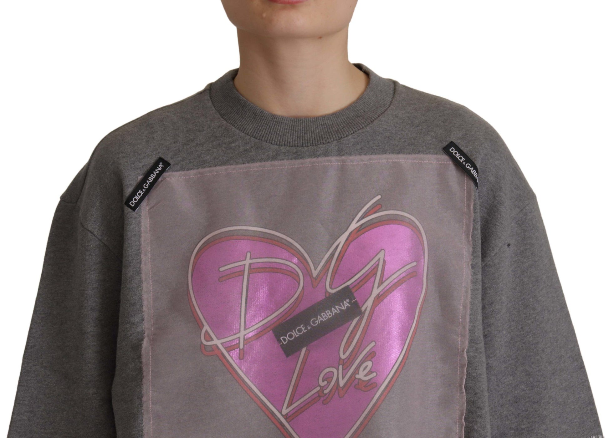 Dolce & Gabbana Chic Grey Cotton Heart Tee with Bell Sleeves