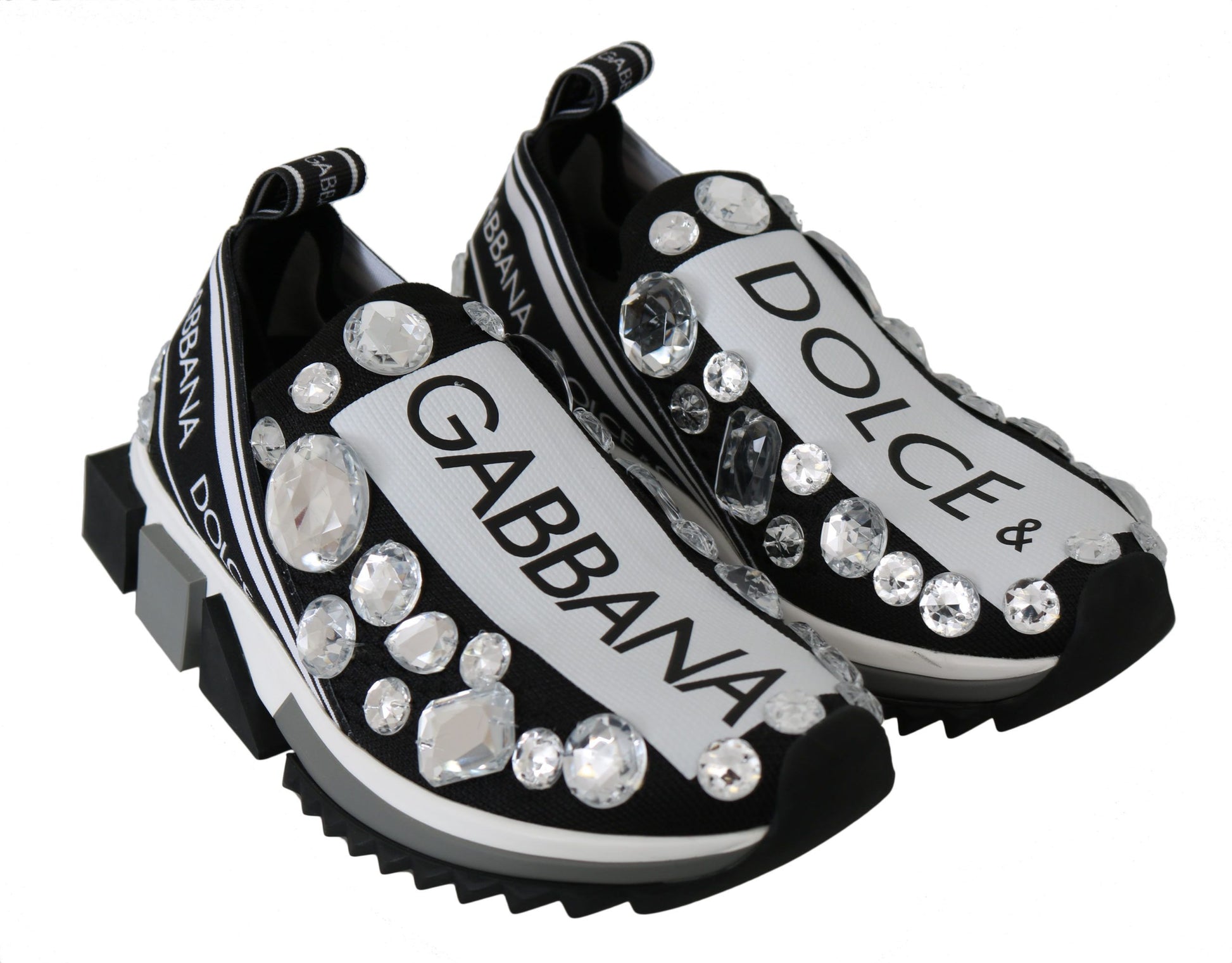 Dolce & Gabbana Chic Monochrome Crystal Studded Sneakers