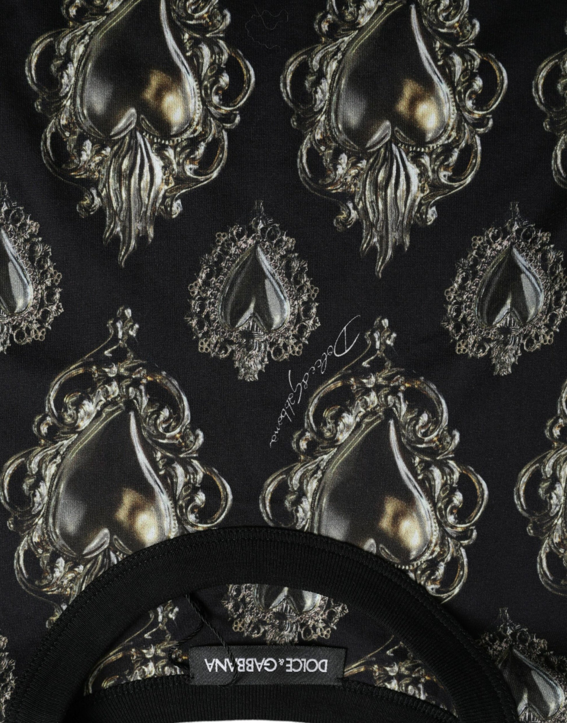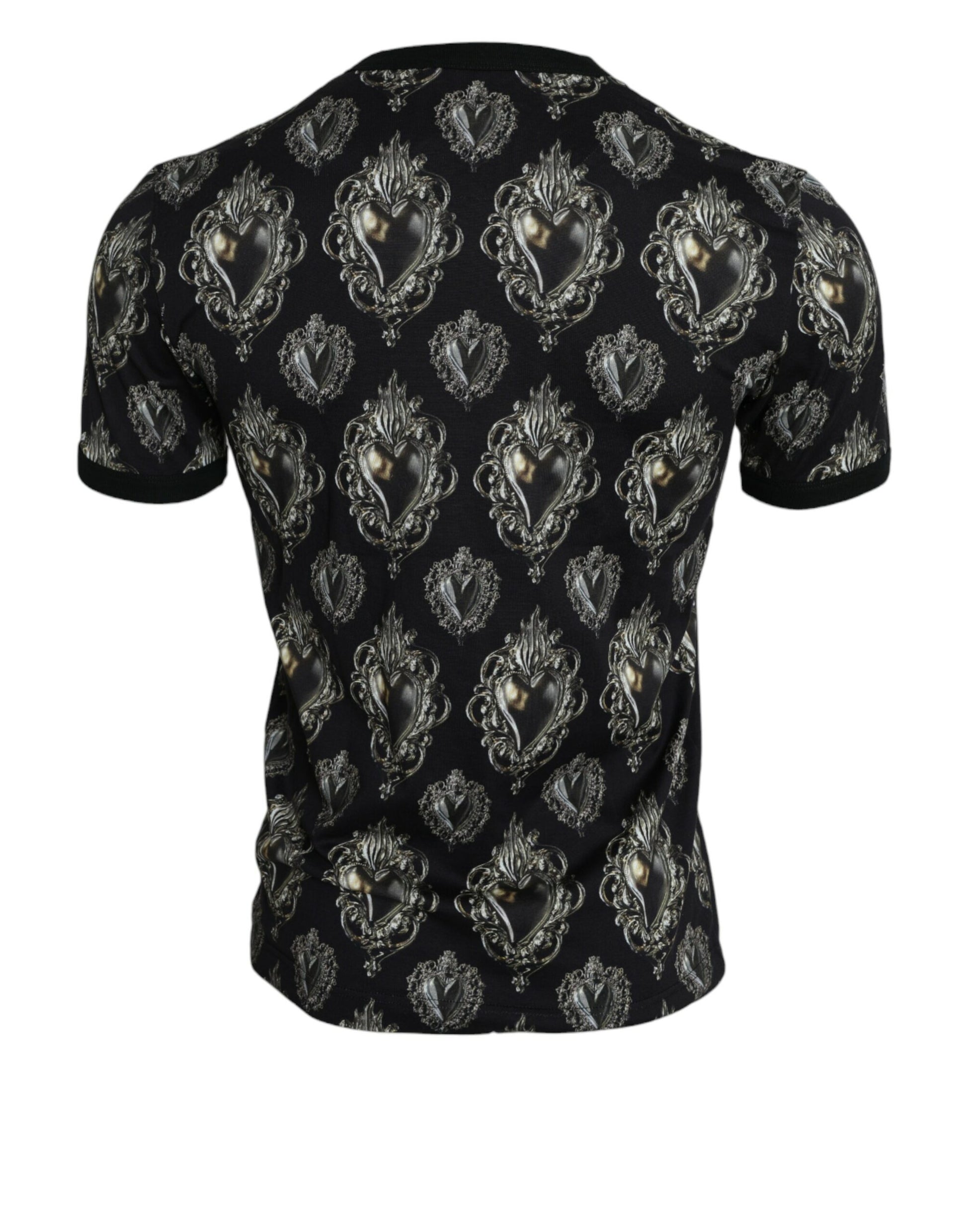 Step up your fashion game with this absolutely stunning, 100% authentic crew neck t-shirt infused with an eye-catching sacred heart print. Perfect for those who take their style seriously, this black cotton shirt exudes elegance while maintaining casual comfort. Made in Italy, this piece ensures you embody the craftsmanship and flair that Dolce & Gabbana is renowned for.