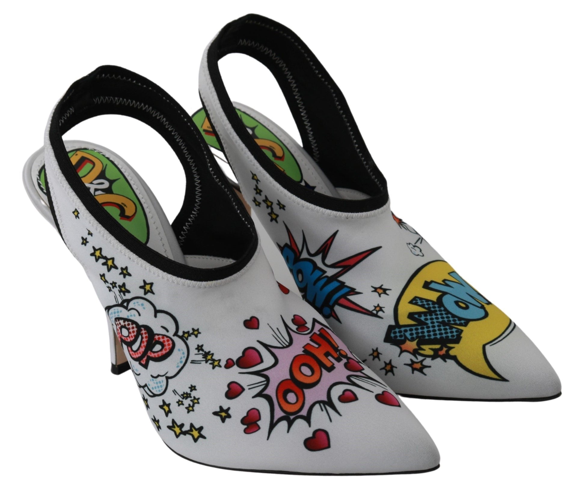 Dolce & Gabbana Chic White Multicolor Slingbacks Pumps