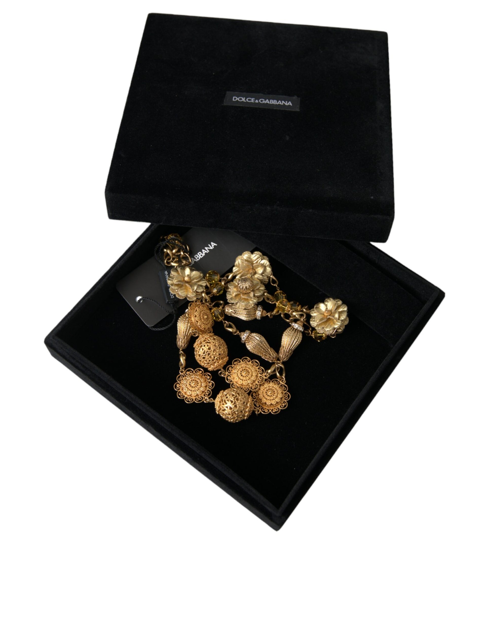 Dolce & Gabbana Crystal Flower Filigree Gold Brass Statement Necklace