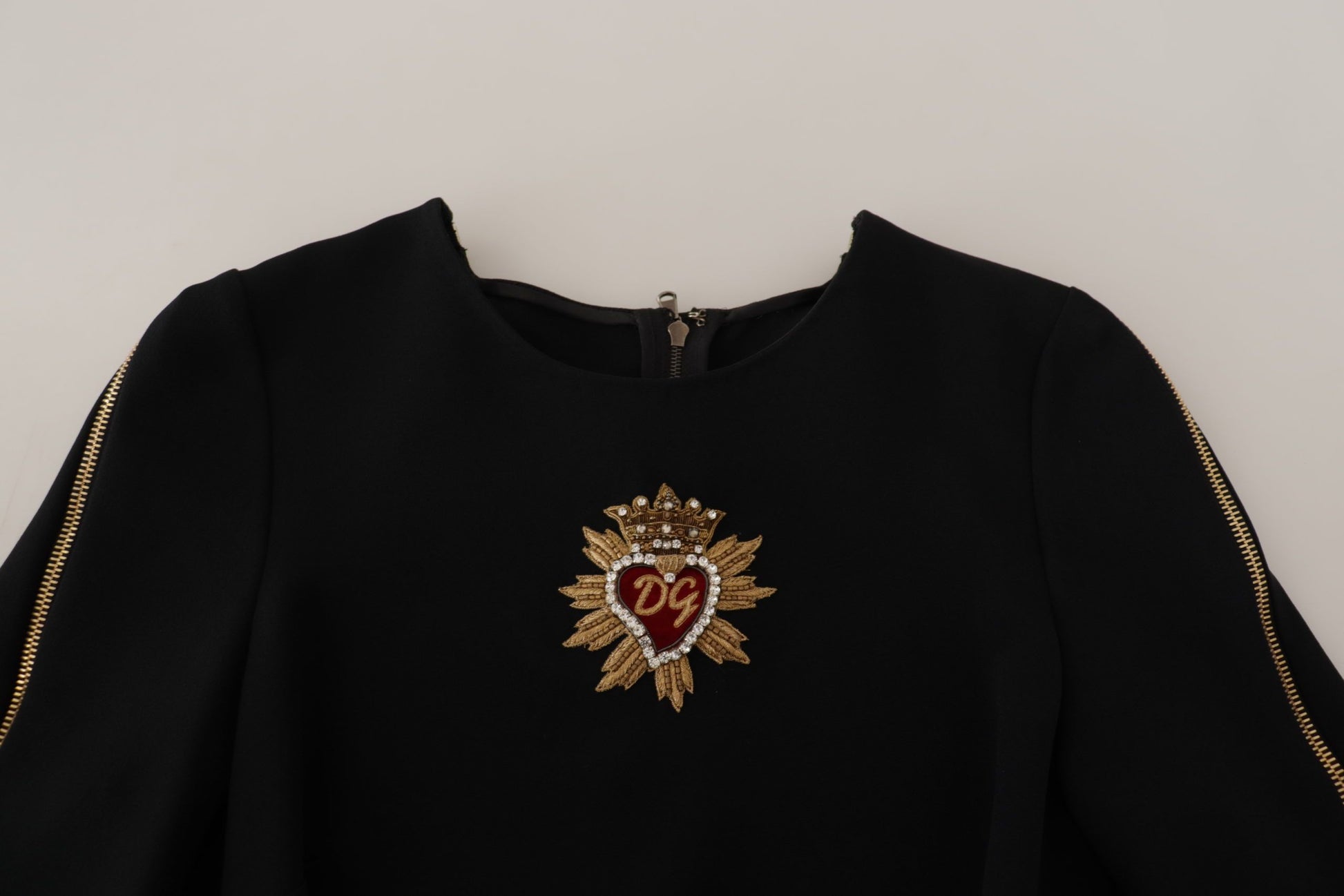 Dolce & Gabbana Elegant Beaded Logo Zip Sleeve Blouse