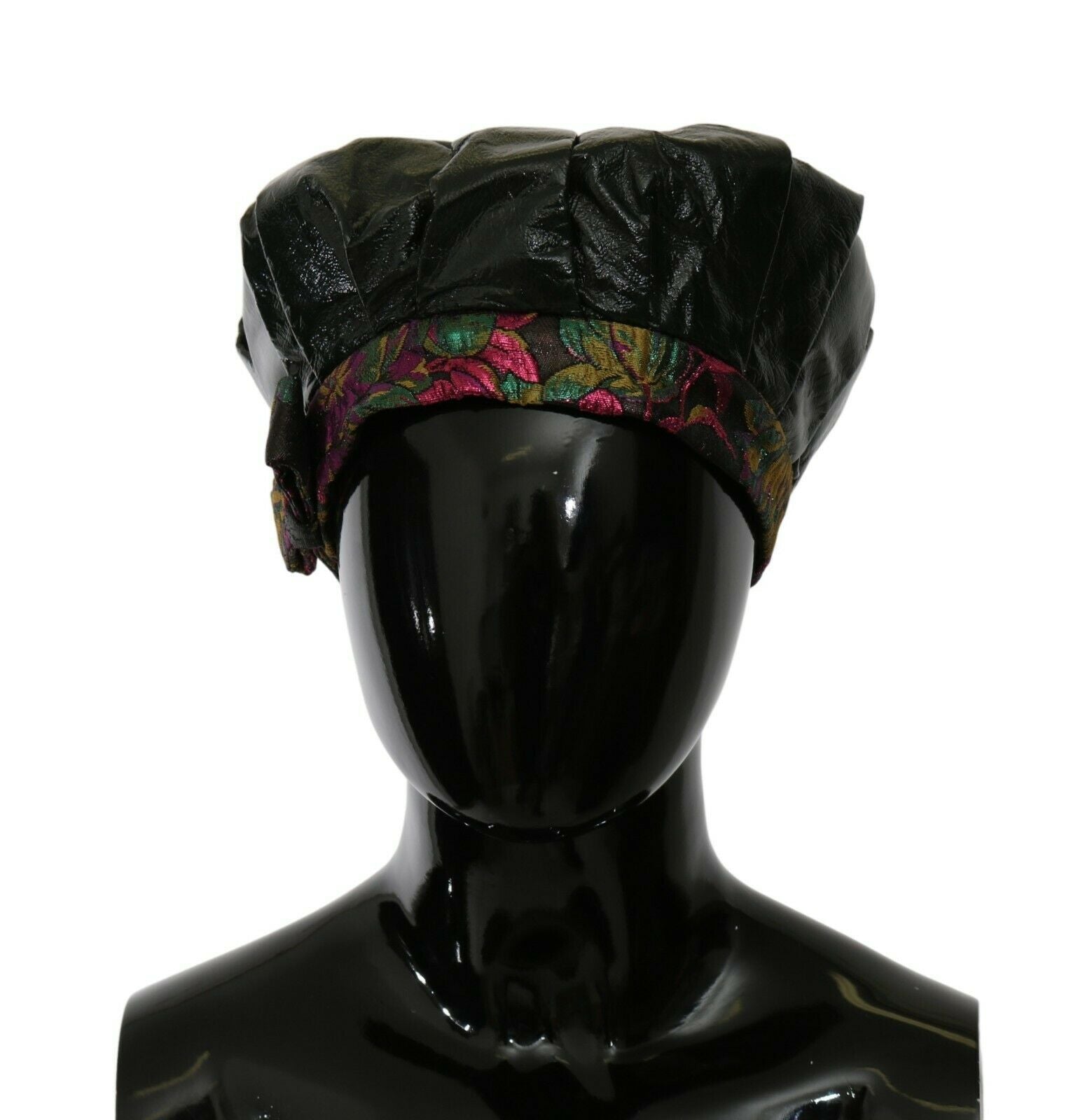 Dolce & Gabbana Elegant Black Beret Cap with Floral Lining