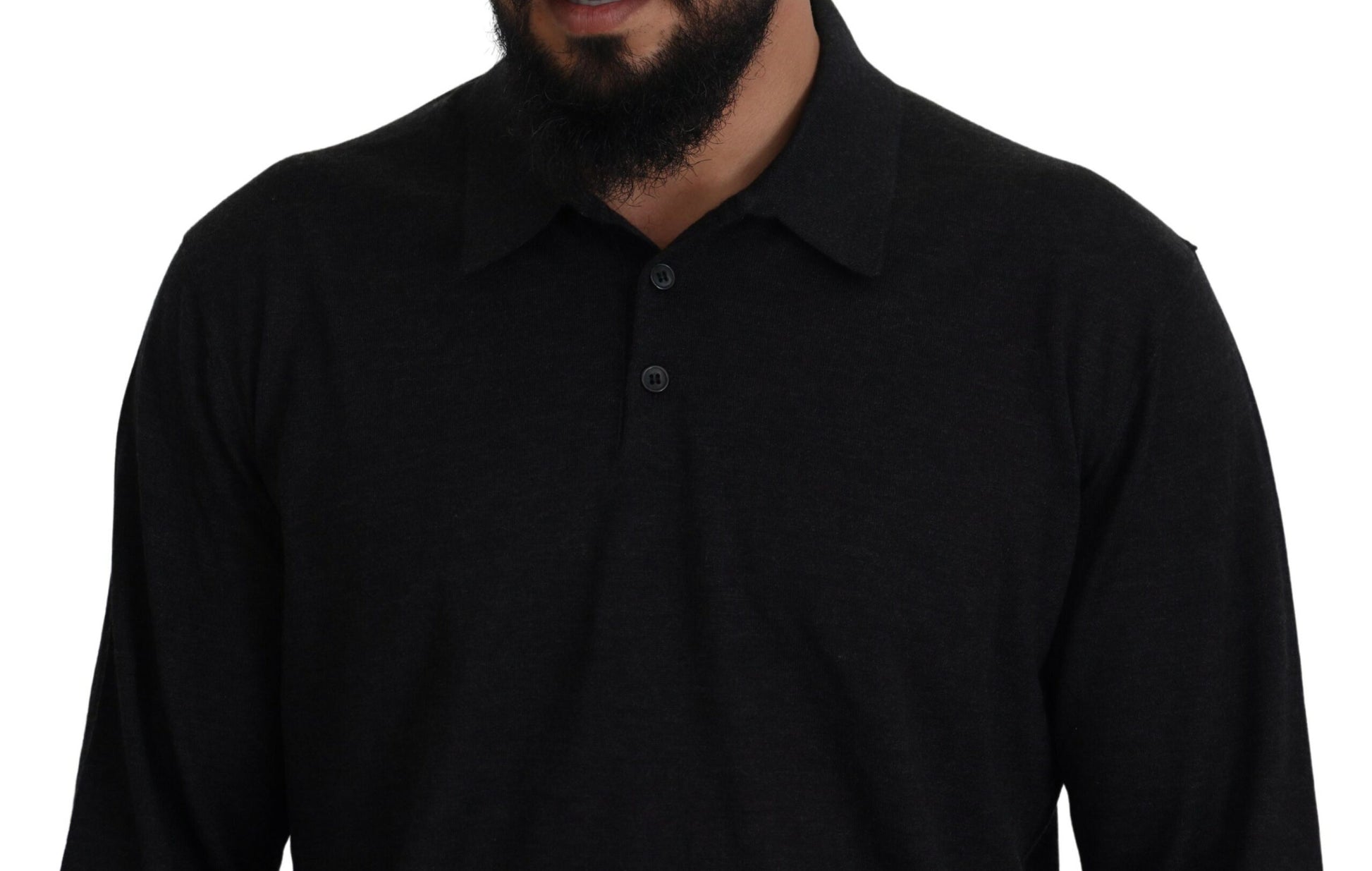 Indulge in the epitome of luxury with this sophisticated black sweater from Dolce & Gabbana. Crafted from the finest 100% cashmere, this collared pullover is not only a statement of elegance but also a testament to unparalleled comfort. Made with meticulous attention to detail in Italy, it’s adorned with subtle logo details, adding a discreet touch of brand prestige to your wardrobe.