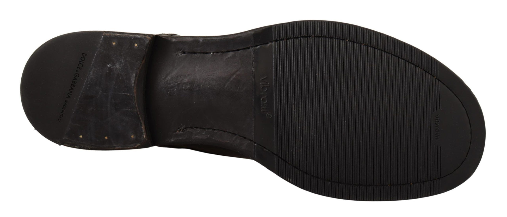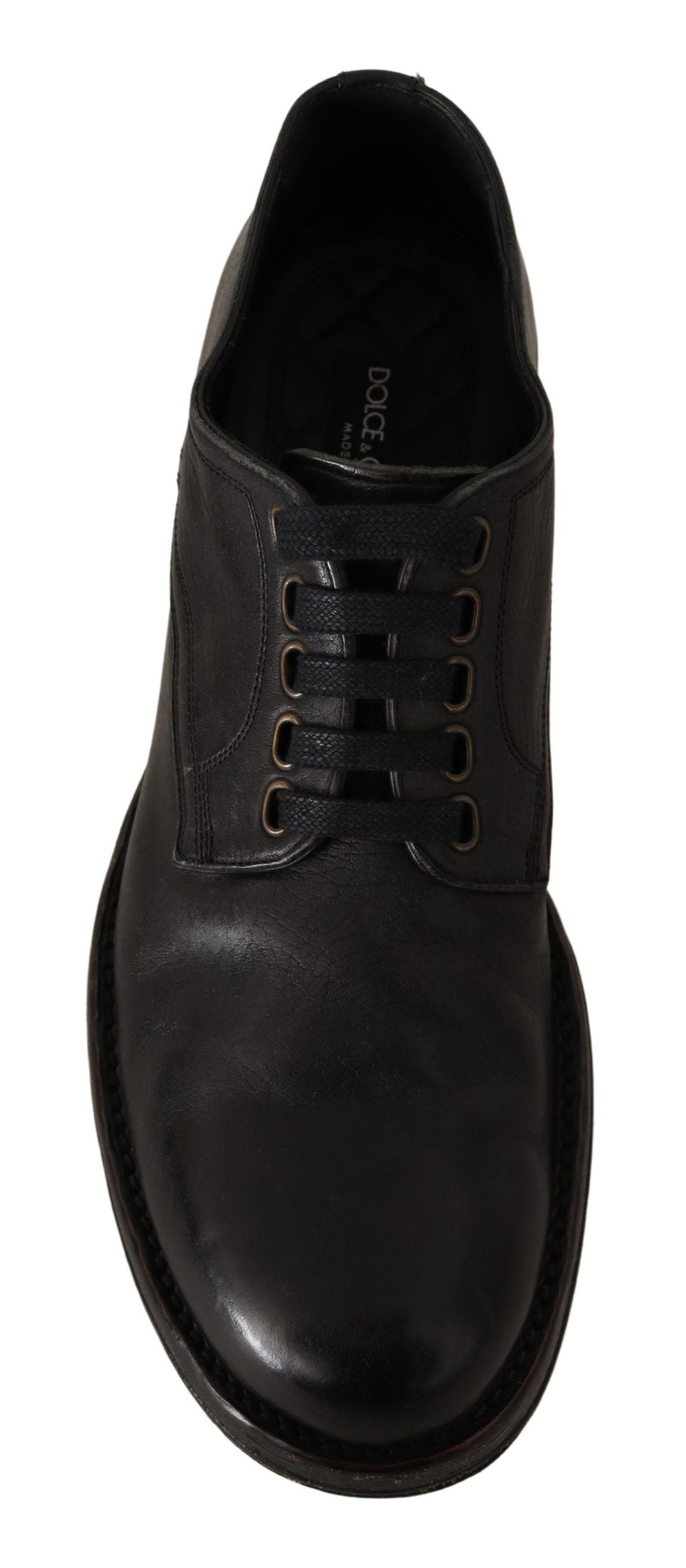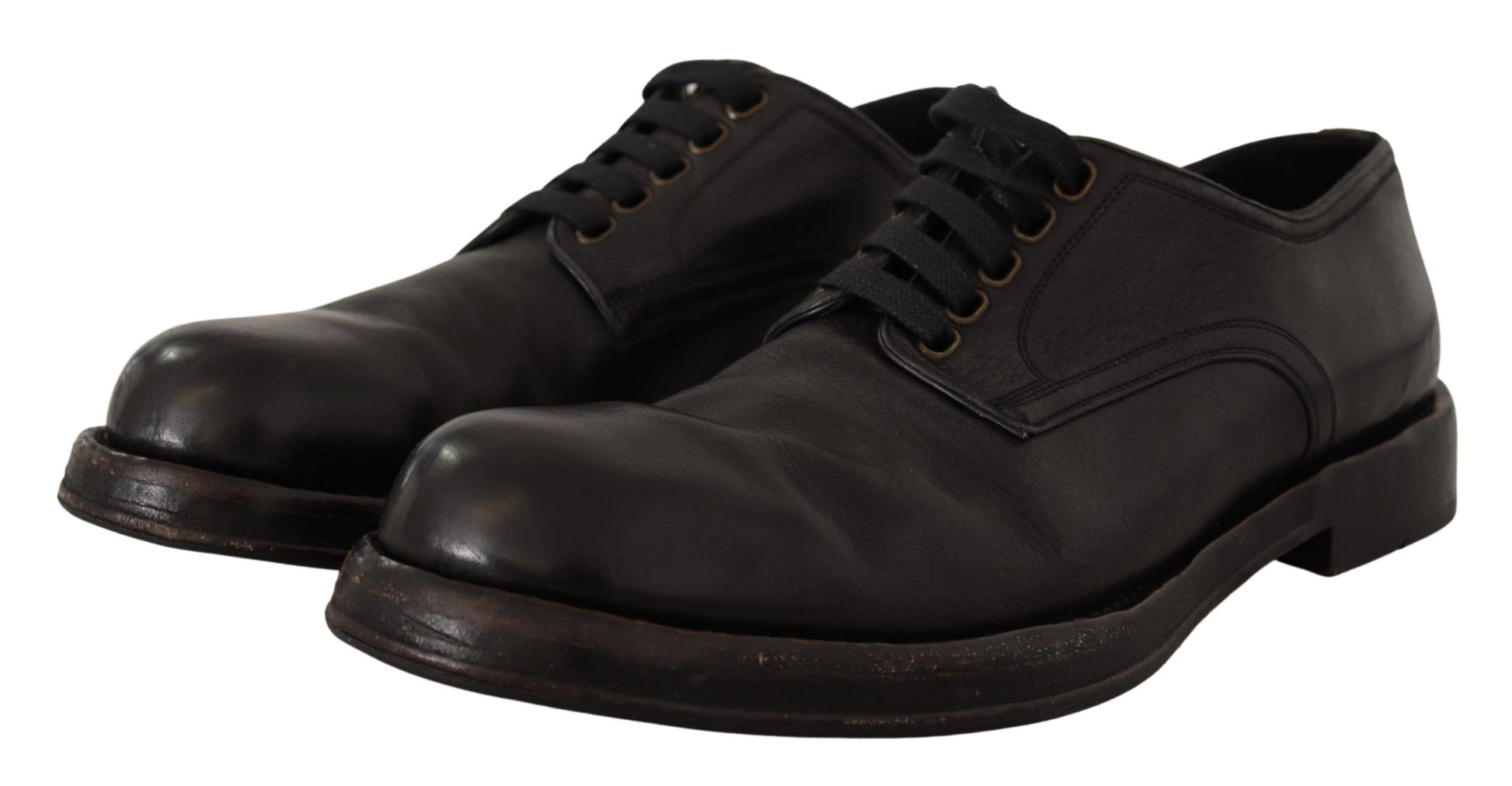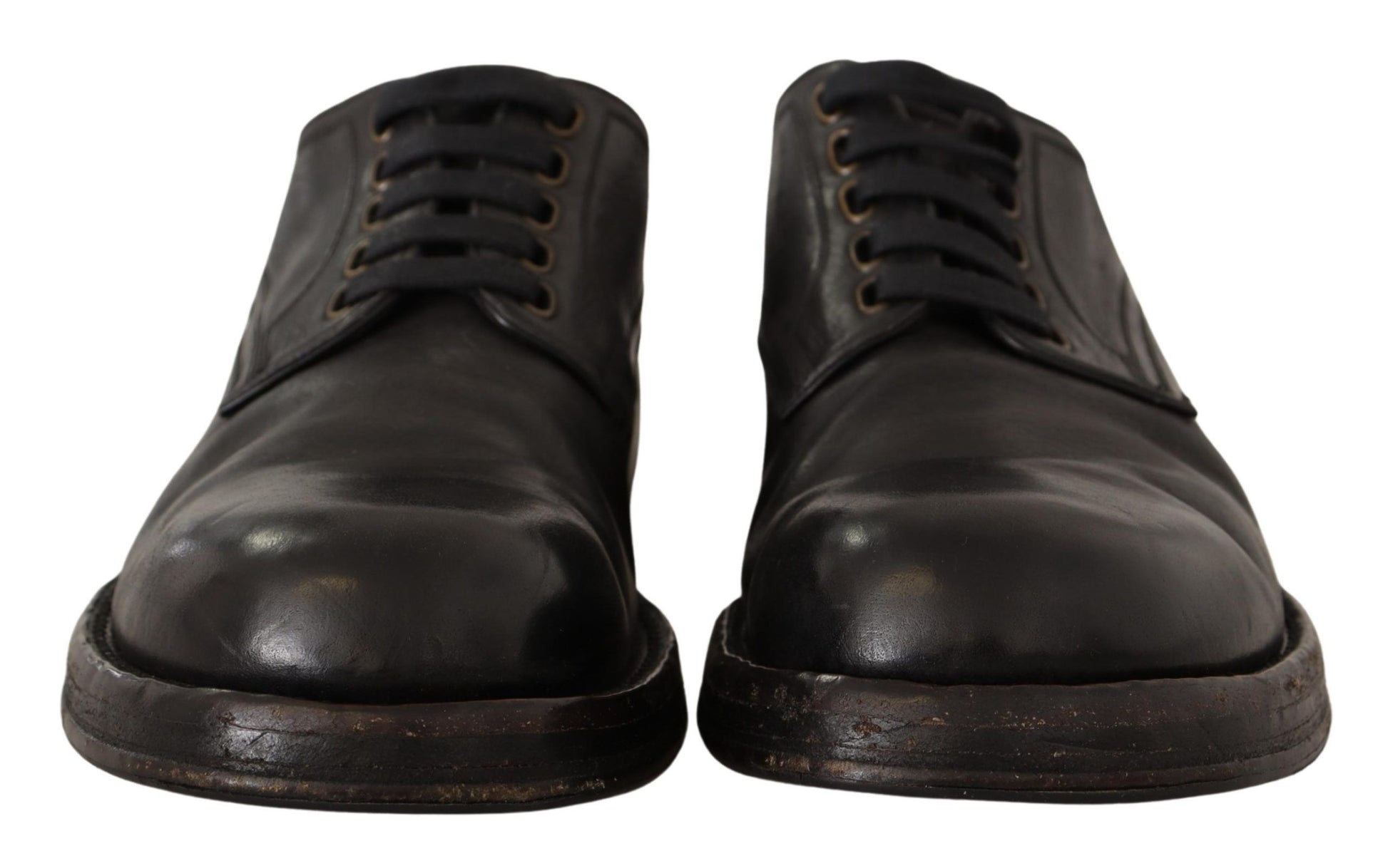 Step into sophistication with these immaculate black lace-up dress shoes, brought to you by the esteemed Dolce & Gabbana. Perfect for formal events or elevating your professional attire, they embody the essence of Italian craftsmanship and the brand’s eye for timeless design. Crafted from premium leather, they feature a sturdy rubber sole for impeccable comfort and durability, while the iconic logo detail adds a discreet hint of luxury. With a vintage finish that enhances their appeal, these shoes are a testament to high-end fashion and exclusivity.