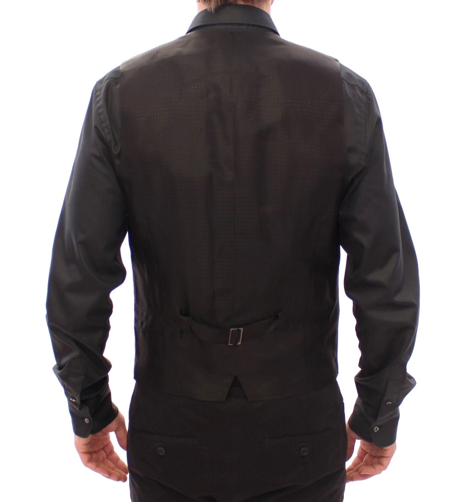 Dolce & Gabbana Elegant Black Wool Silk Blend Dress Vest