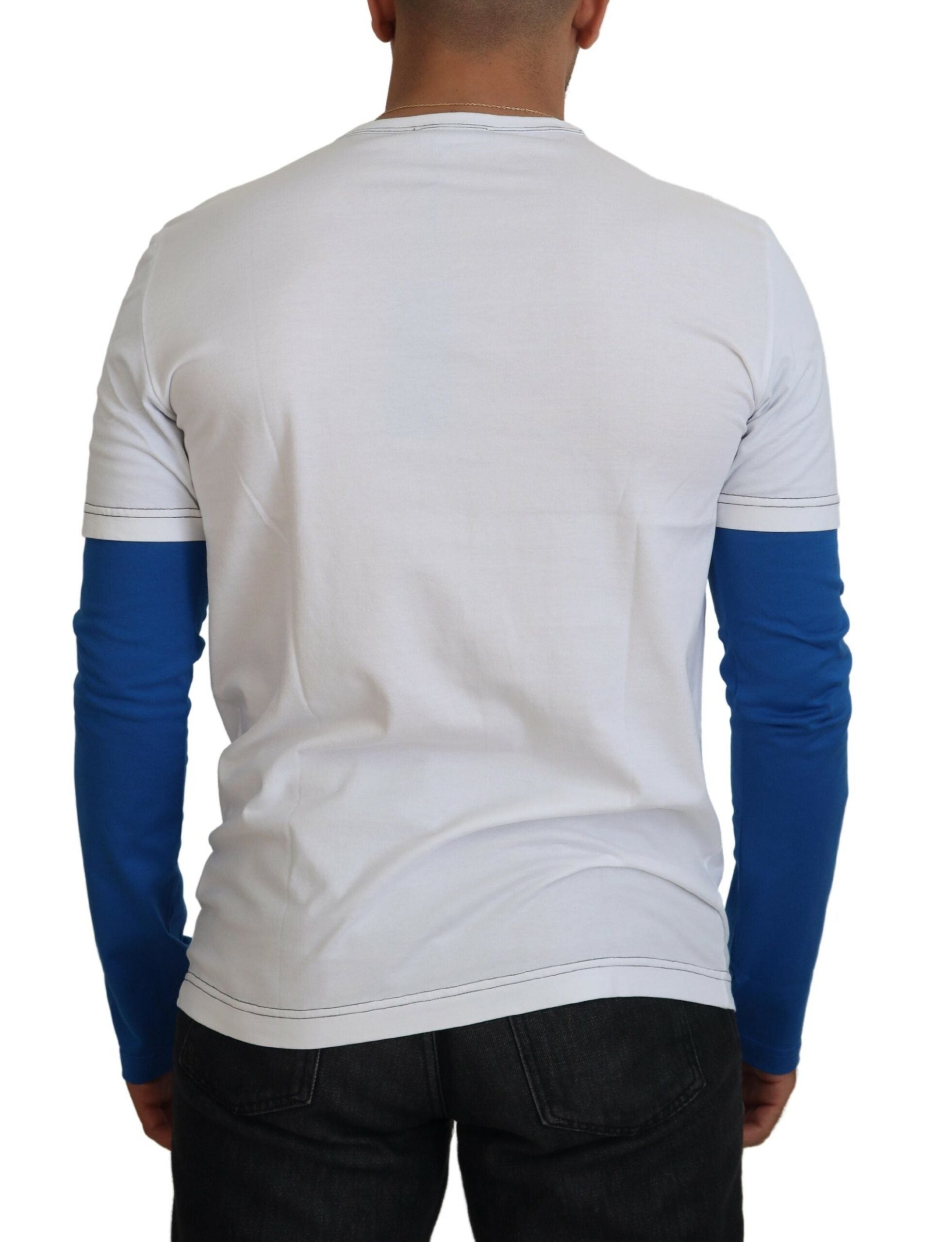 Dolce & Gabbana Elegant Blue and White Crewneck Cotton Sweater