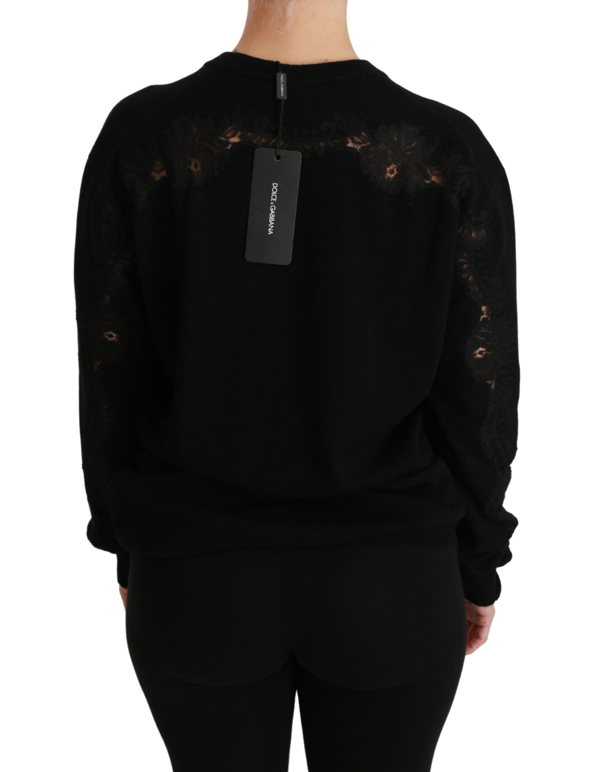 Dolce & Gabbana Elegant Cashmere Crewneck Sweater with Lace Detail