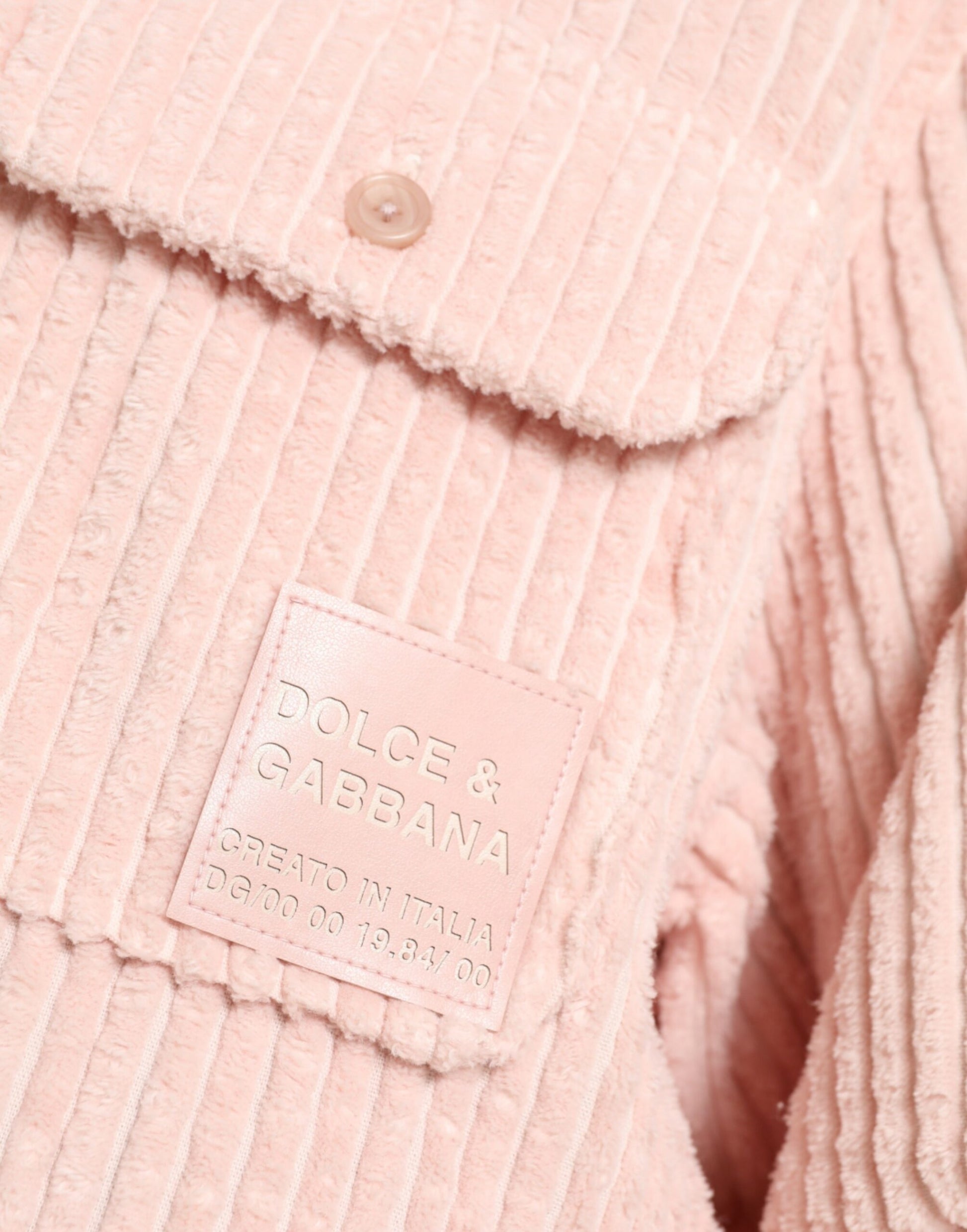 Experience understated elegance with this stunning pink shirt sweater, a testament to the luxurious craftsmanship synonymous with Dolce & Gabbana. This authentic piece is perfect for those who appreciate finesse and detail, complete with a sleek spread collar, front button closure, and the iconic logo accentuating its designer pedigree. Crafted in Italy from the finest 100% cotton, this sweater is a versatile addition to any discerning wardrobe.