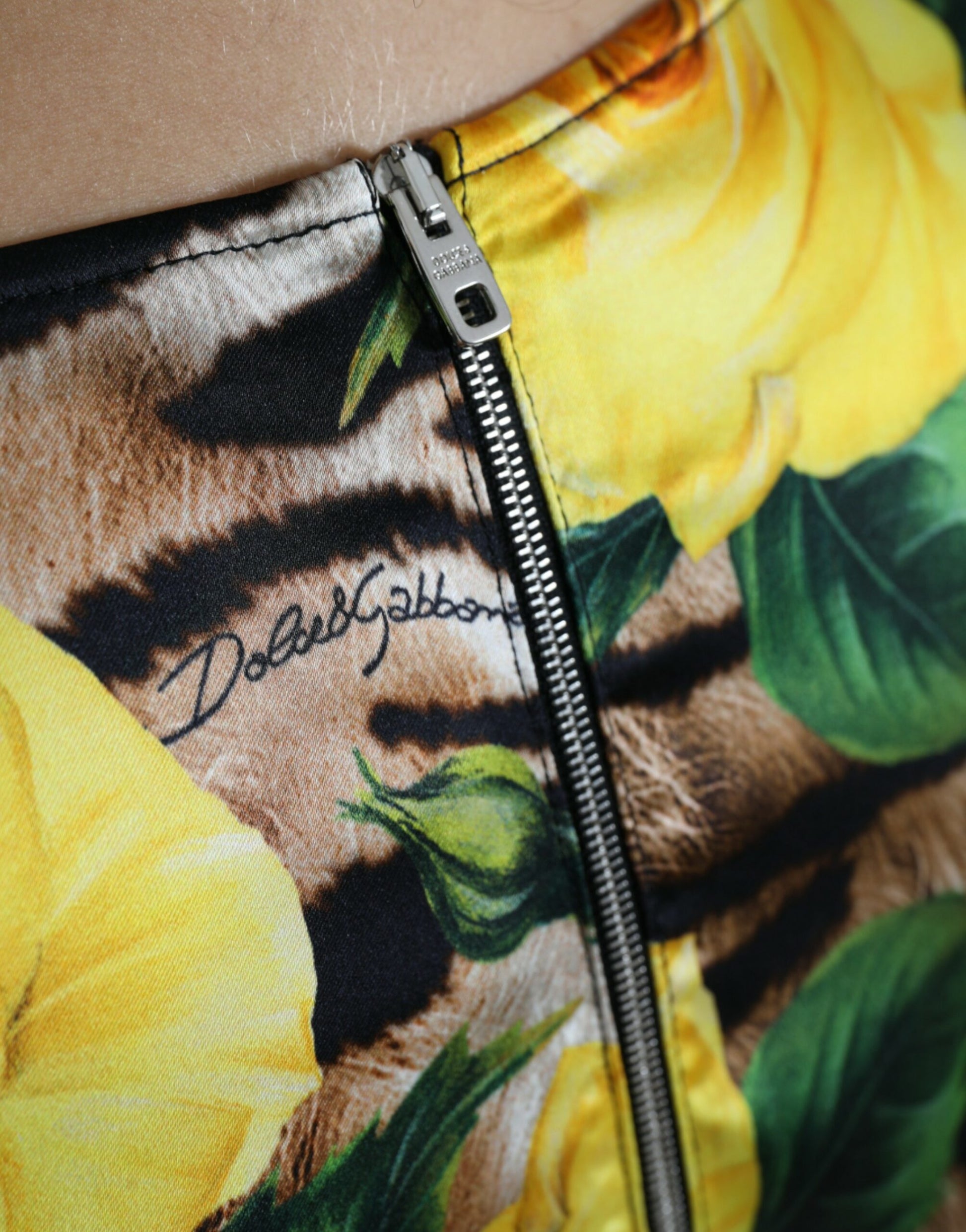 Embrace the epitome of Italian luxury with this exquisite cropped blouse top from Dolce & Gabbana. Featuring a vibrant multicolor floral design that exudes sophistication, this top is perfect for those who appreciate elegance and style. Crafted from a blend of high-quality materials, it pairs comfort with a fashion-forward aesthetic. With its round neck and long sleeves, this blouse offers a classic silhouette that’s both timeless and modern. Complete with a chic back zipper closure, this piece is a testament to the brand’s attention to detail and commitment to luxury.