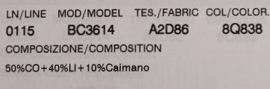 - Material: 50% Cotton, 10% Cayman leather, 40% Linen