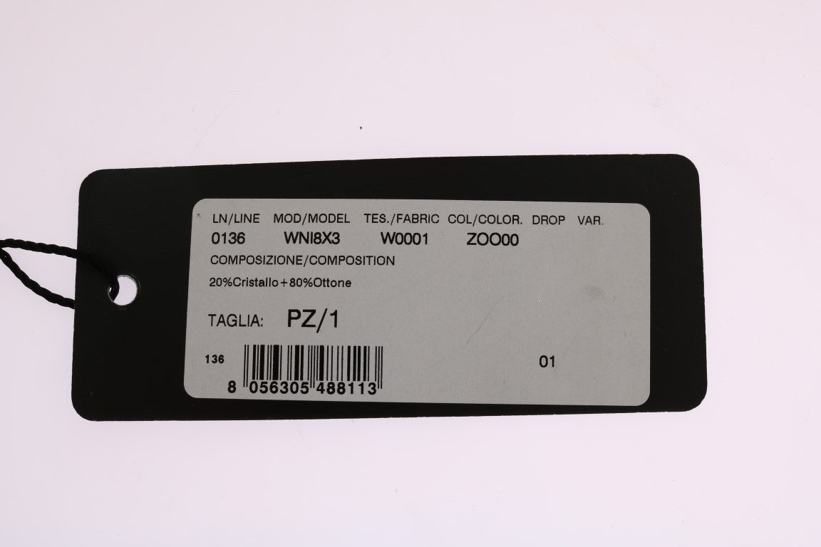 Accentuate your neckline with this stunning piece of craftsmanship from Dolce & Gabbana. This gorgeous statement necklace, new with tags, features a gold crystal design complemented by a handpainted Pupi Doll Sicily motive. The blend of 80% brass and 20% crystal gives it a luxurious weight and sparkle. Perfect for elevating any outfit, it comes with a classic lobster clasp closure and proudly wears the Dolce & Gabbana logo, marking its authenticity and Italian heritage.