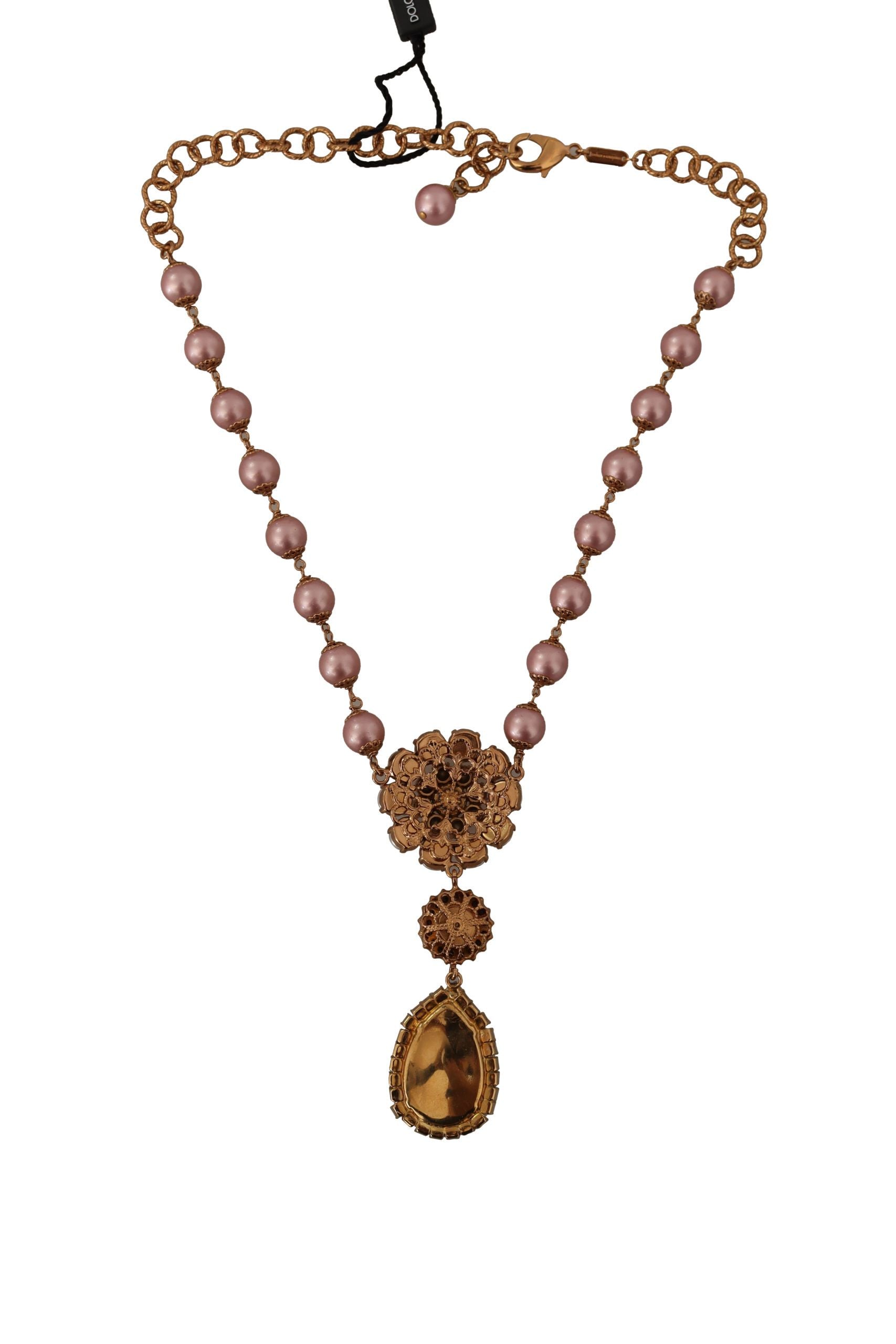 Dolce & Gabbana Elegant Gold Tone Faux Pearl Charm Necklace