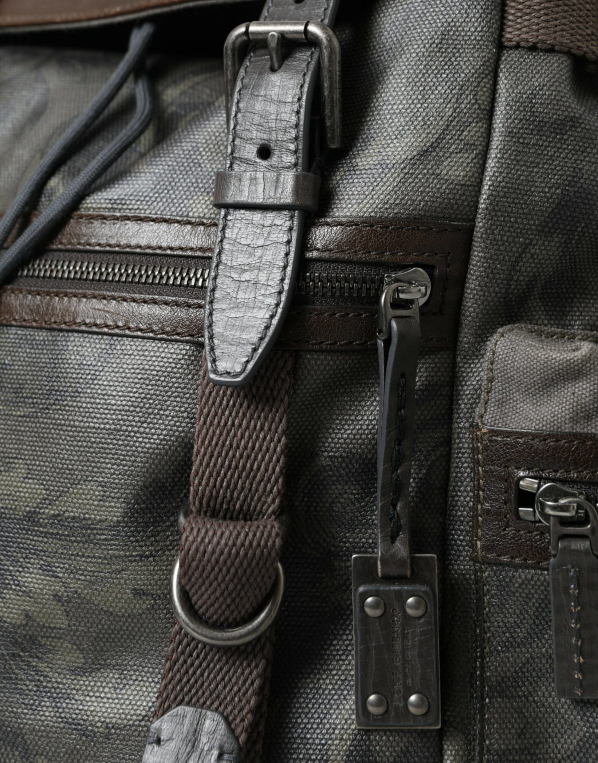 Dolce & Gabbana Elegant Green Canvas & Leather Backpack